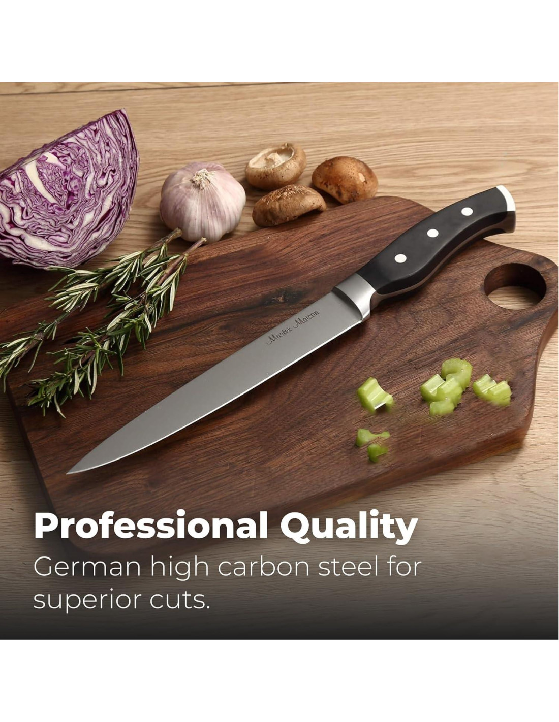 - Precisión con cuchillo de corte de 8 pulgadas: Logra rebanadas perfectas y uniformes usando este cuchillo de corte de 8 pulgadas; diseñado para equilibrio y control, lo que lo convierte en una gran opción para chefs profesionales y caseros por igual