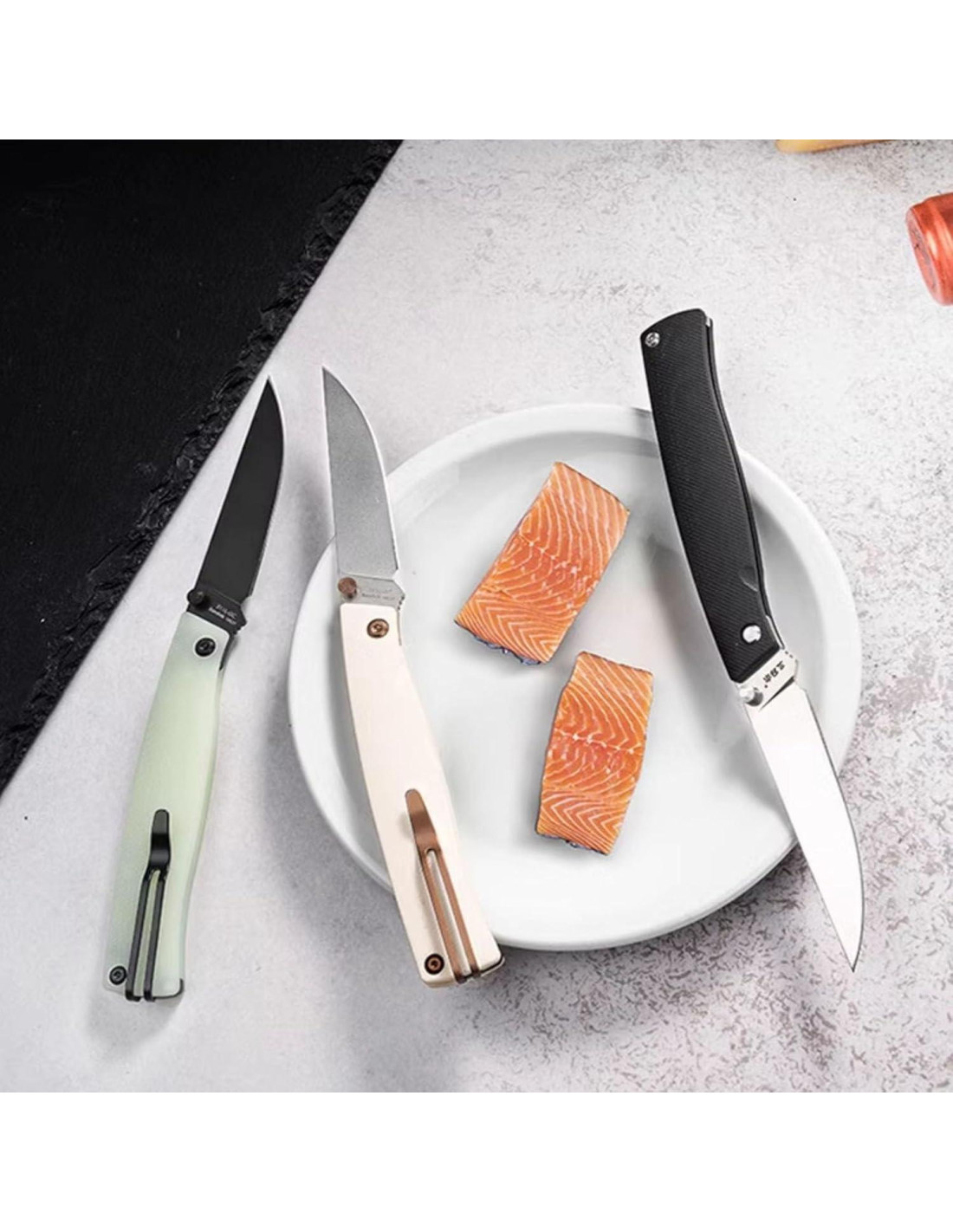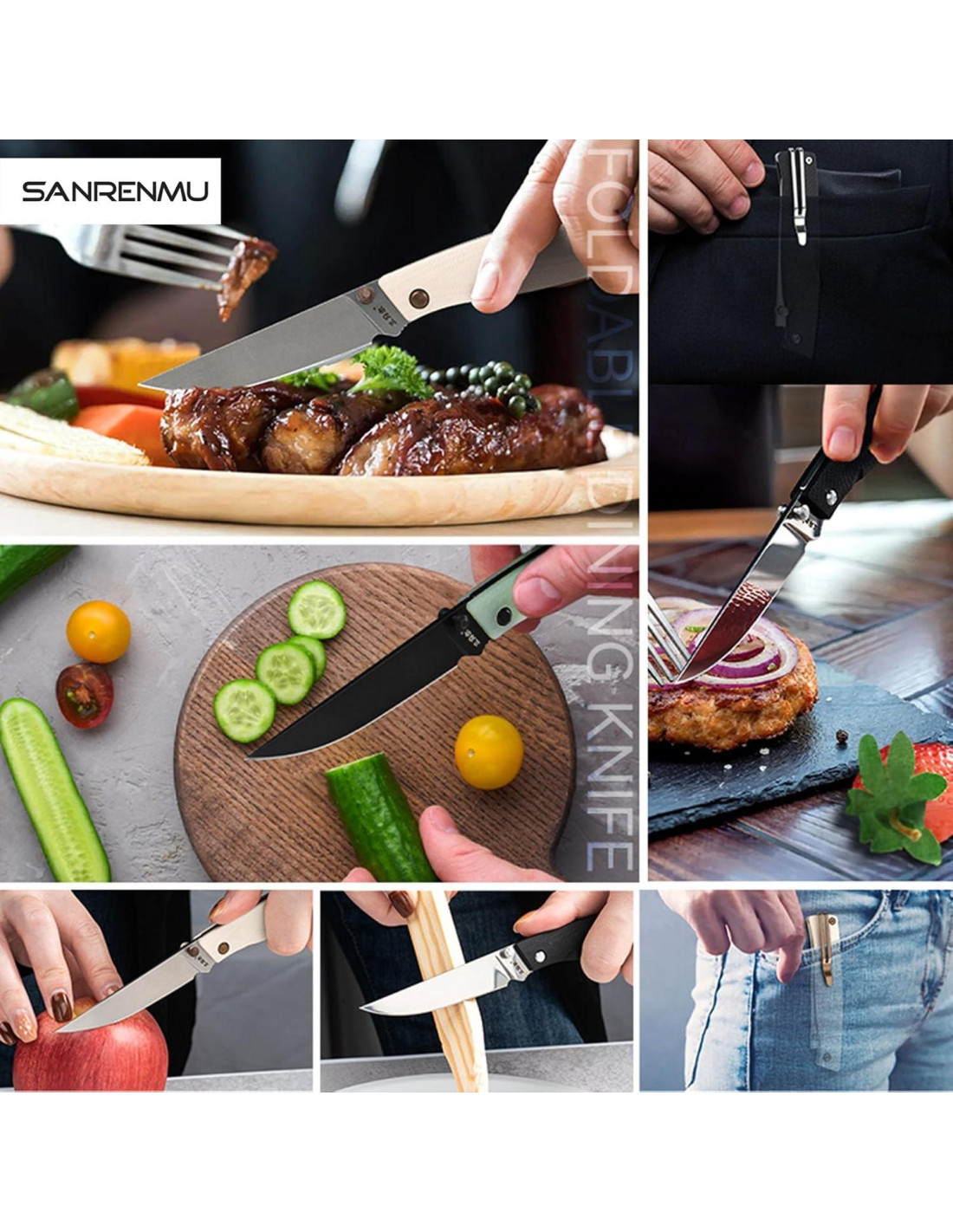 - Ya sea en casa o al aire libre, puede cortar carne, bistec y disfrutar del placer de la comida en un momento. Se puede usar para abrir cajas de envío y cortar varios artículos en la vida diaria. Adecuado para aventuras al aire libre, camping, senderismo y uso doméstico. También es perfecto como regalo o colección para amantes de los cuchillos
