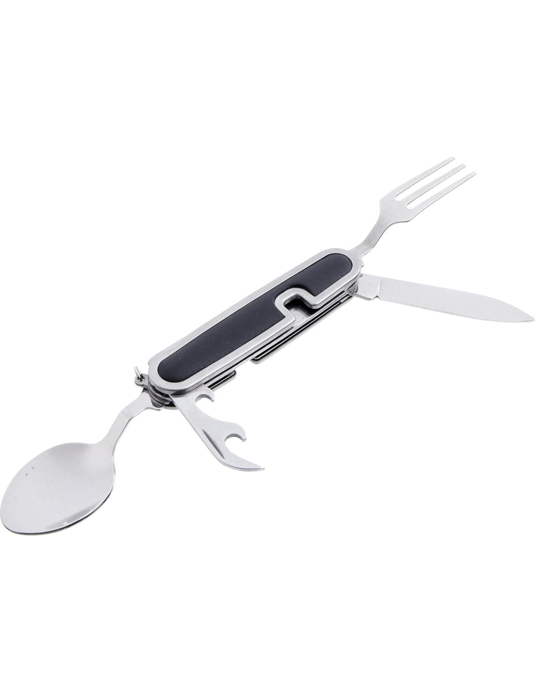 - Utensilios de comida desplegables con tenedor y cuchara completamente desmontables; también incluye abridor de latas/botellas