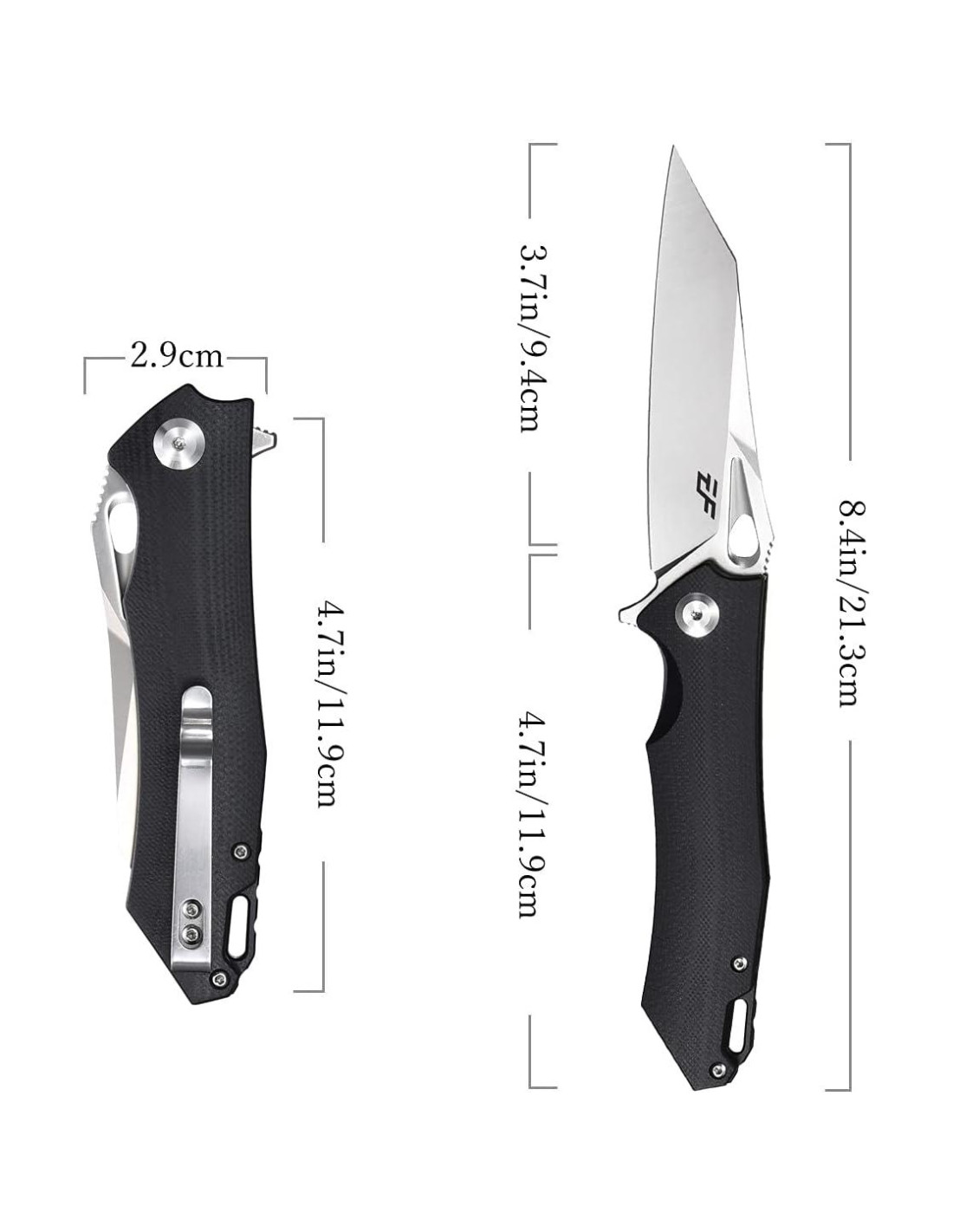 - CUCHILLO DE BOLSILLO: 8.4 pulgadas (21.3 cm) de longitud total con una longitud de hoja de 3.7 pulgadas (9.4 cm), grosor de hoja de 3 mm y un peso de 3.97 oz (112.5 g)
