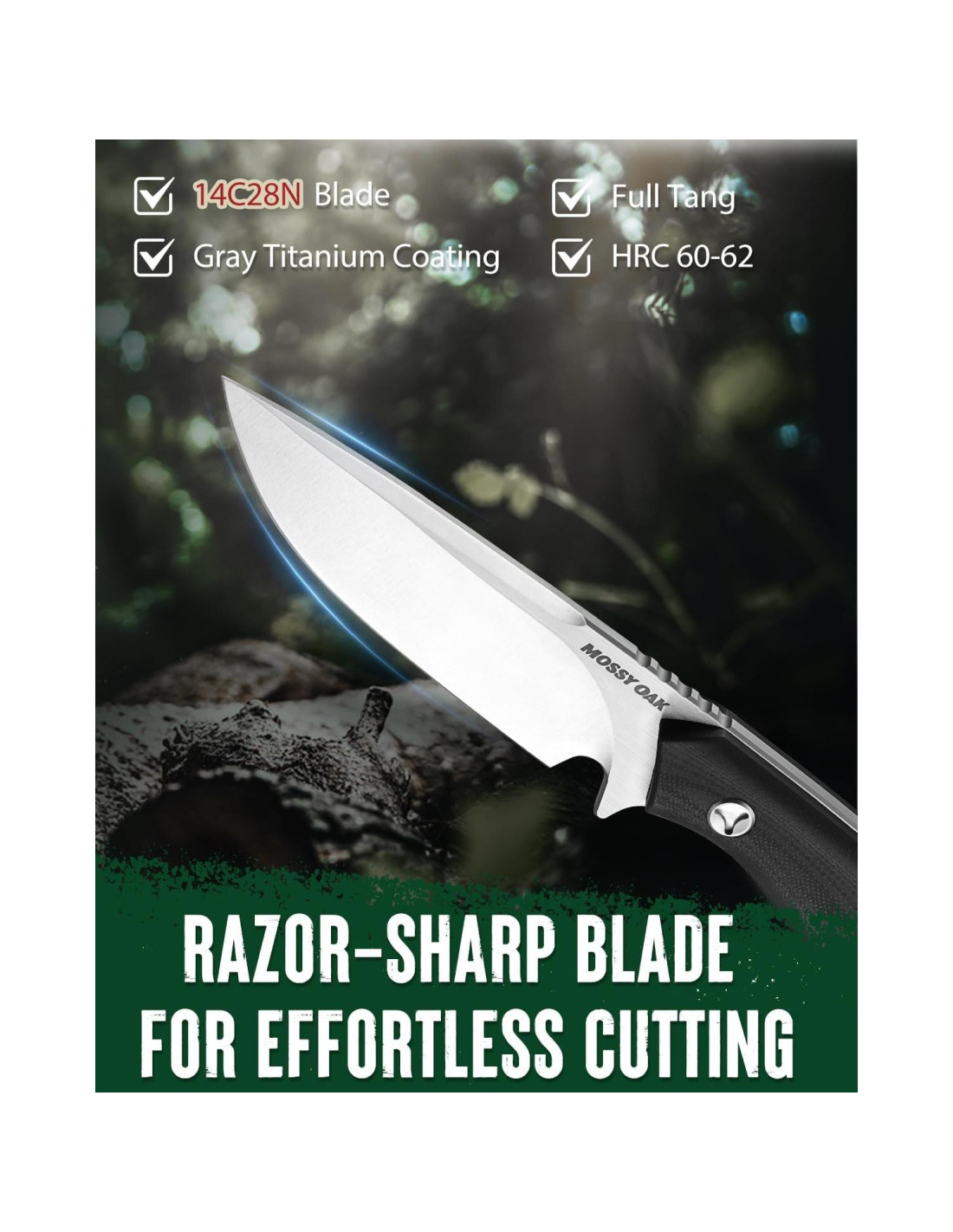 - Hoja extremadamente afilada para un corte sin esfuerzo: Fabricada con acero inoxidable 14C28N de primera calidad, esta hoja fija de 22.23 cm ofrece una excepcional retención de filo, resistencia a la corrosión y rendimiento de corte para todas tus tareas al aire libre
