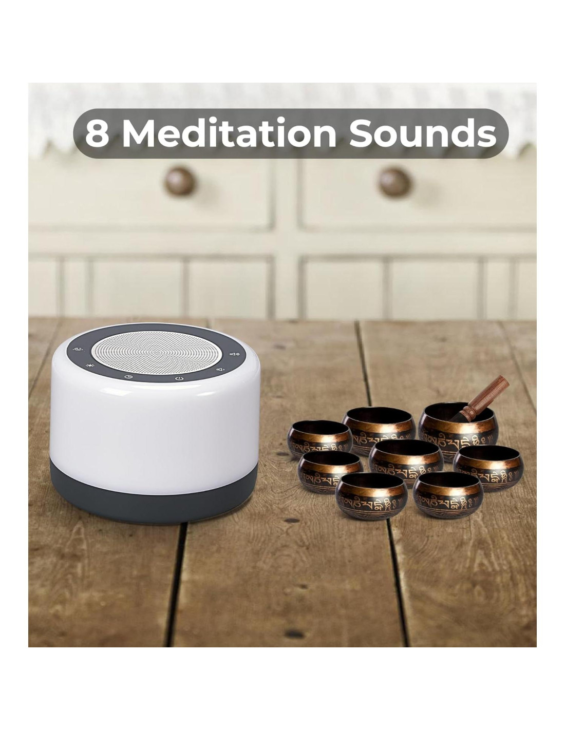 - [Funciones de Temporizador Convenientes y Establece tu Propio Ritmo] Nuestra máquina de cuencos tibetanos cuenta con opciones de temporizador de 15/30/60/90/120 minutos. El dispositivo se apaga automáticamente o reproduce toda la noche según tu preferencia. Reinícialo sin preocupaciones ya que recuerda el último sonido y configuración de volumen.