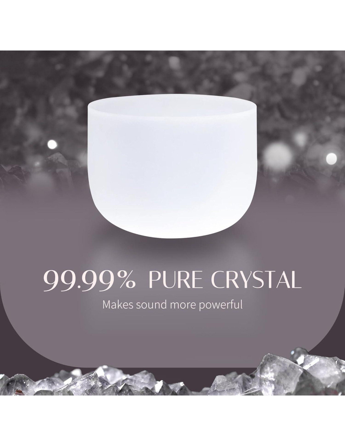 - [Cuencos de Cuarzo Cantante Incluyen] Cuenco de cuarzo cantante de alta calidad 440HZ 8 pulgadas Nota F, incluyendo un mallet de madera y un O-ring de goma para un uso conveniente.