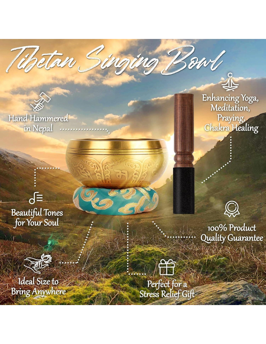 - Enraizado en la Herencia Himalaya: Estos cuencos cantores están elaborados en Nepal, reflejando una profunda significación cultural e histórica; Son símbolos de la filosofía y espiritualidad oriental
