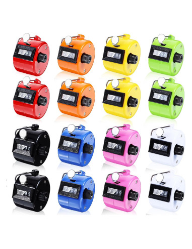 - Cantidad Suficiente: el paquete contiene 16 piezas de clickers de conteo en diferentes y brillantes colores, disponibles en negro, blanco, amarillo, verde, rojo, naranja, azul, rosa, cantidad adecuada y varios colores pueden satisfacer tus necesidades diarias de uso y reemplazo, también puedes compartirlos con tu familia y amigos