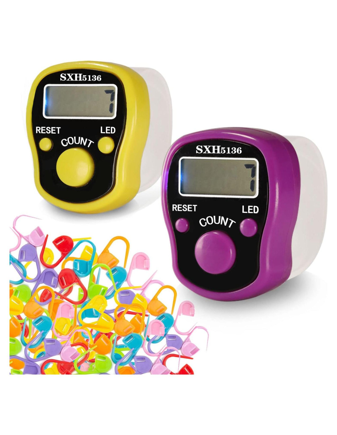 - Lo que obtienes 2 Pac Pantalla LED de contadores de tejido LCD y 50 Pac clips de bloqueo de ganchillo, que son herramientas prácticas para usar para contar el número de filas o marcar el centro, se envían en color aleatorio;