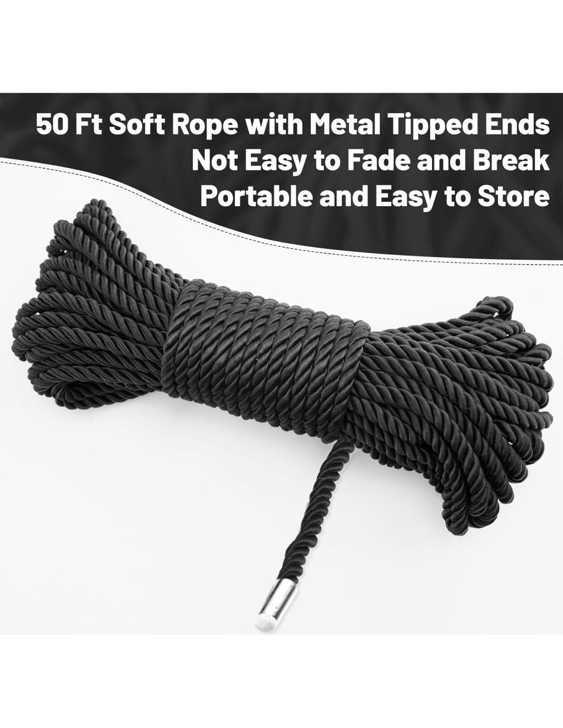 - [CON TAPONES METÁLICOS EN LOS EXTREMOS]- El extremo de cada cuerda suave tiene tapones metálicos para evitar que se deshaga, fácil de usar, puede usar cuerdas donde quiera