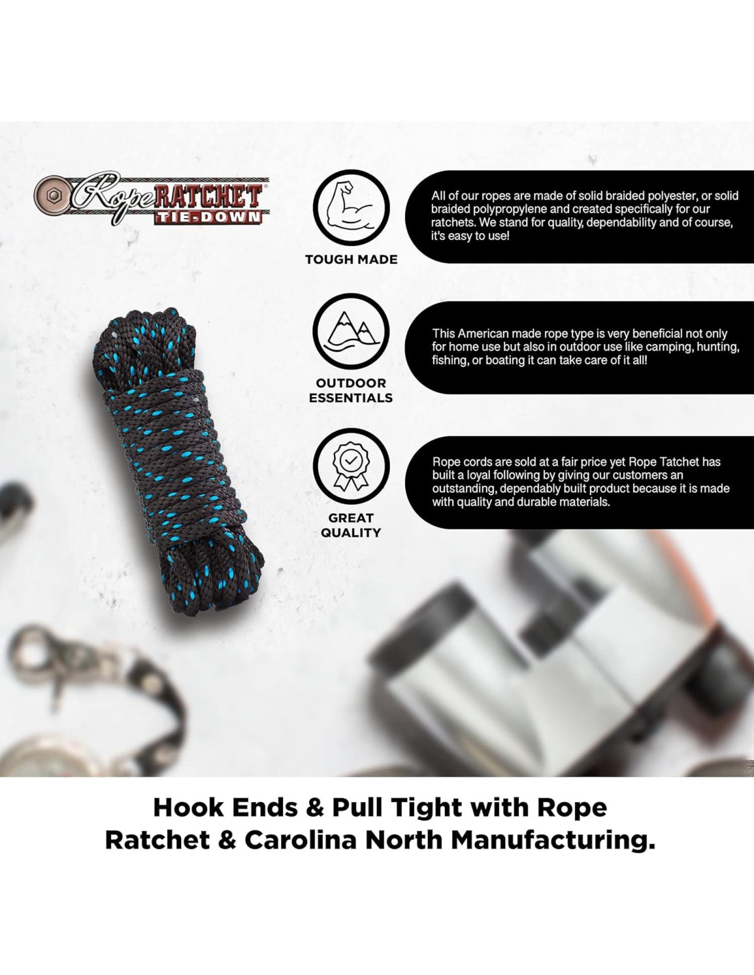 - GARANTÍA FIABLE - Rope Ratchet respalda cada compra con una garantía de un año que cubre defectos en materiales o mano de obra. Ya sea utilizada como cuerda negra, cuerda de lona o cuerda resistente a la intemperie para uso al aire libre, puedes depender de una calidad y rendimiento consistentes.