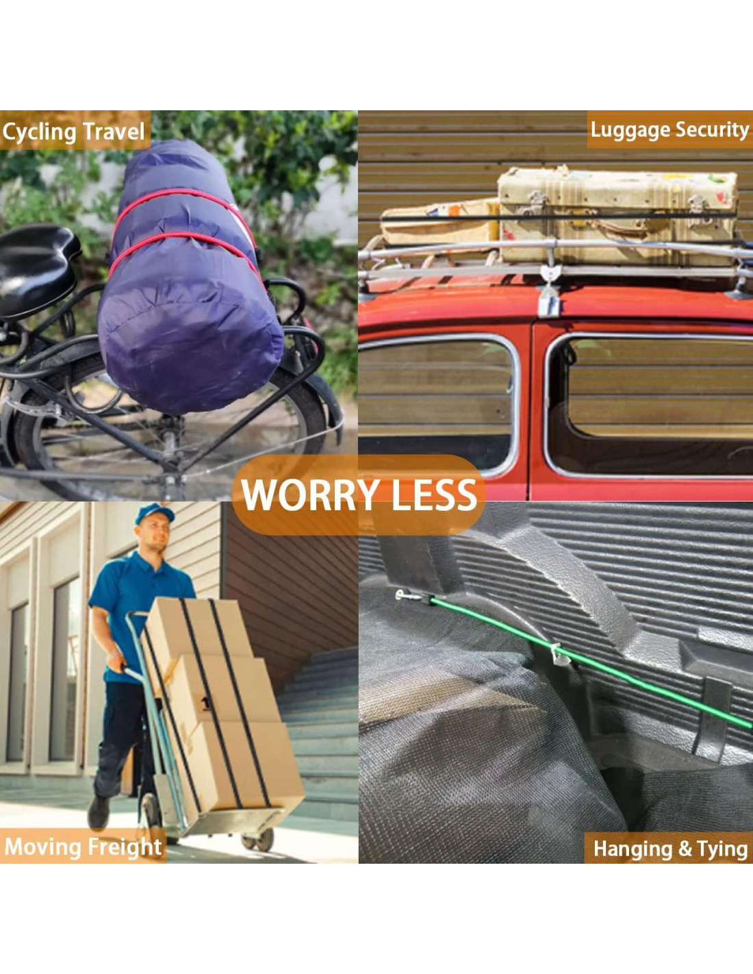 - Los extremos en bucle de la cuerda bungee son firmes y más fuertes que la bungee plana con gancho, adecuada para portaequipajes, remolques, carritos de mano, barcos, caravanas, camping, sujeción de lonas, etc.