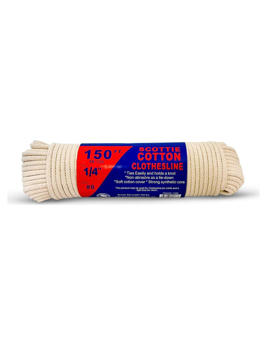 - Componentes incluidos: 1/4" x 150' Cuerda de Ropa Scottie