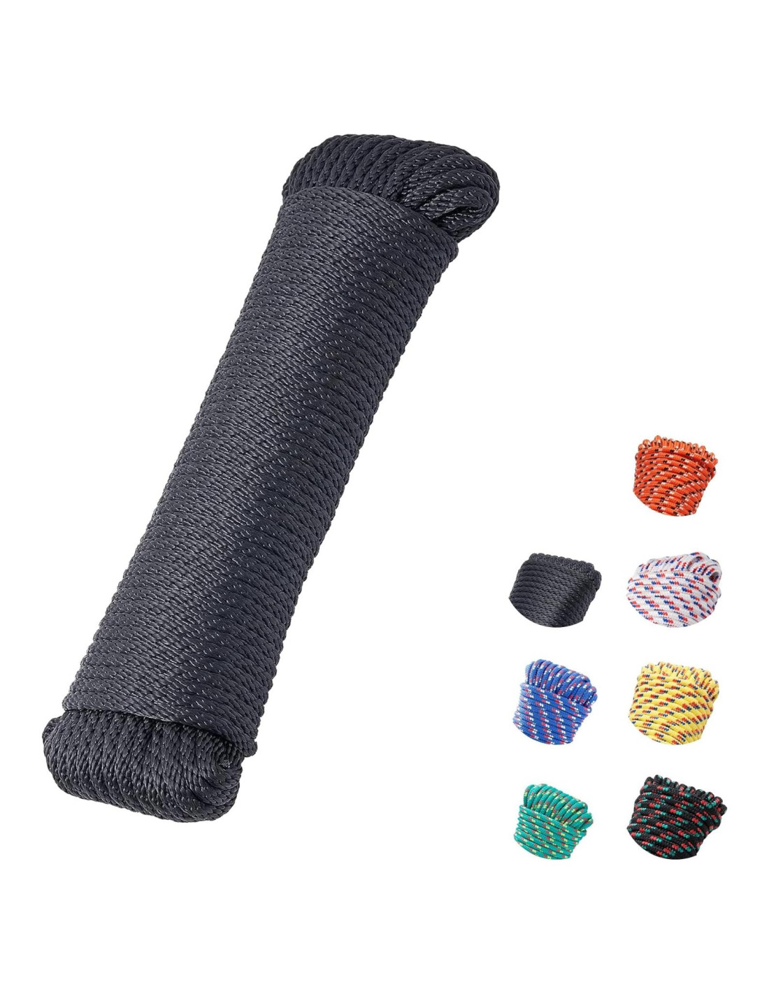 - Propiedades del polipropileno: El material superior y la construcción fuerte hacen que nuestra cuerda de polipropileno no se vea afectada por la abrasión y la decoloración. Puede flotar en el agua, los diseños de color negro son fáciles de ver, e ideal para camping, navegación y cualquier otra actividad interior o exterior. Límite de carga y consejos: 1300 lbs (590 kg) de límites de carga de trabajo hacen que sea la cuerda de poliéster ideal para diversas actividades, desde manualidades hasta transporte de cargas pesadas.