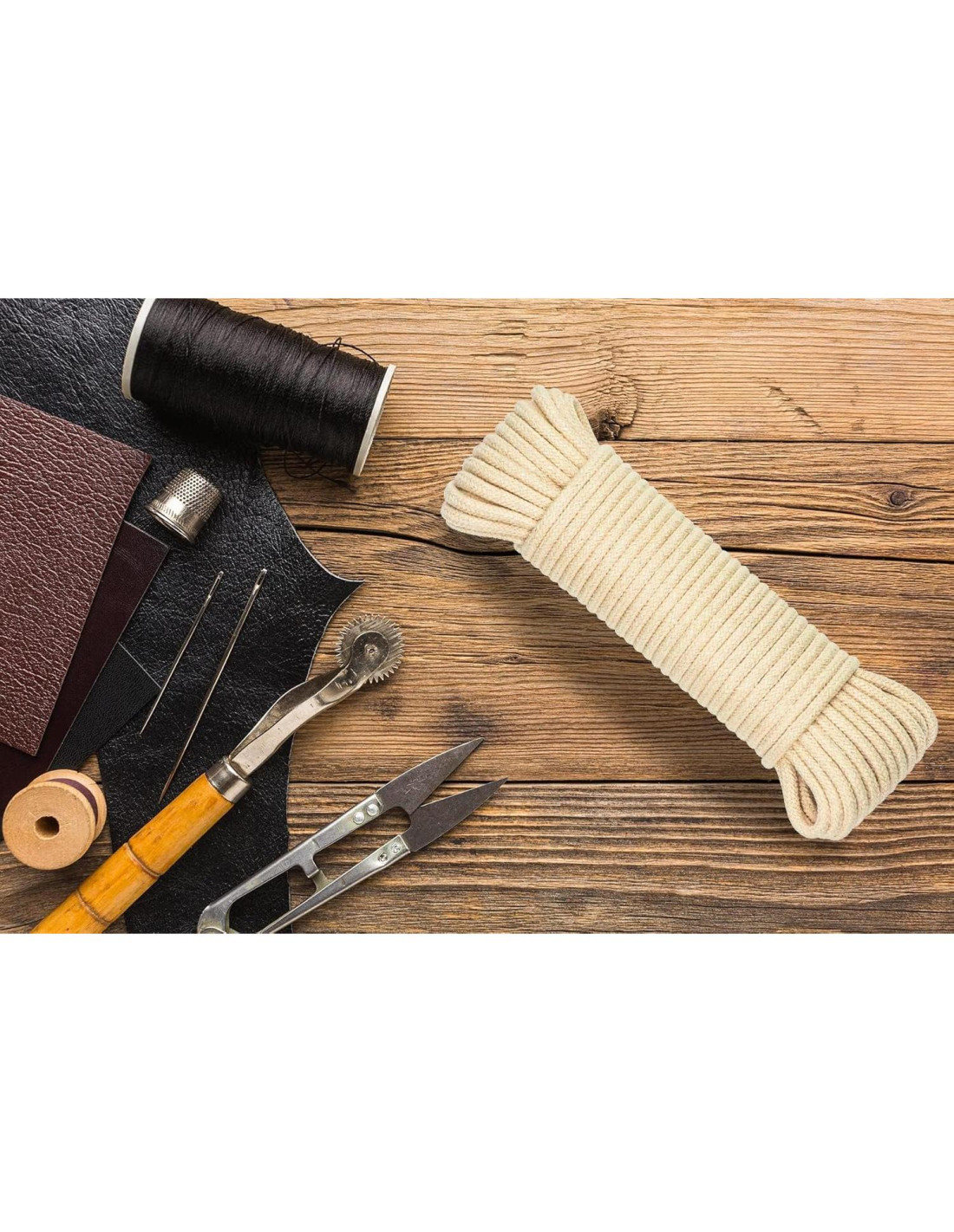 - Cuerda de Algodón Natural de 61m, 5mm de Grosor - Fuerte Construcción, Alta Tolerancia al Estrés, No Afectada por Abrasión, Resistente a UV, Flota en Agua, Ideal para Navegación y Camping, Cabestros y Arnés.