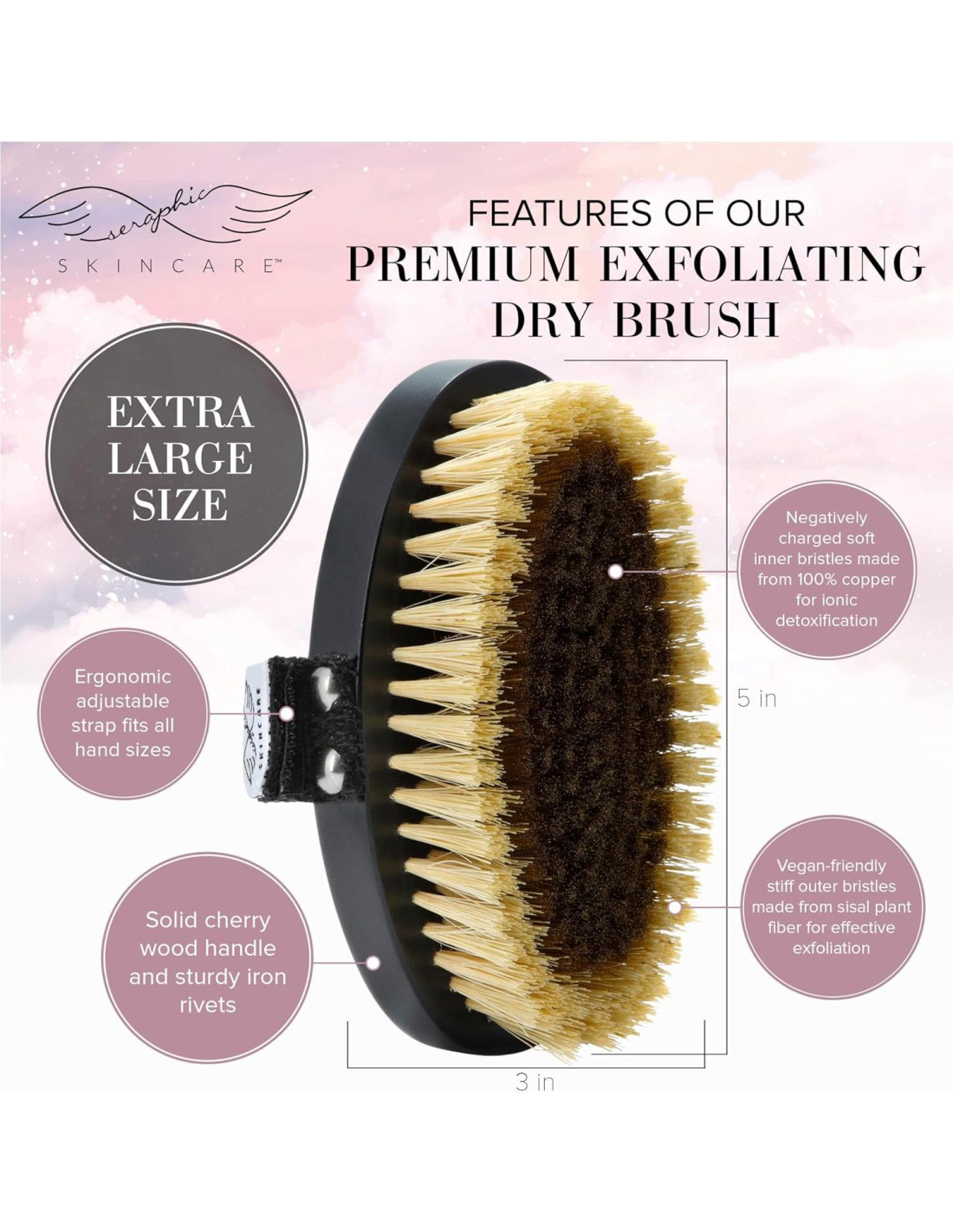 - Disfruta de una Experiencia de Spa en Casa - En Seraphic Skincare, estamos comprometidos a ofrecer productos exfoliantes premium a precios asequibles. Te invitamos a sumergirte en la lujosa experiencia de exfoliación y autocuidado en casa al agregar este práctico y efectivo cepillo seco a tu colección de herramientas y accesorios de belleza!