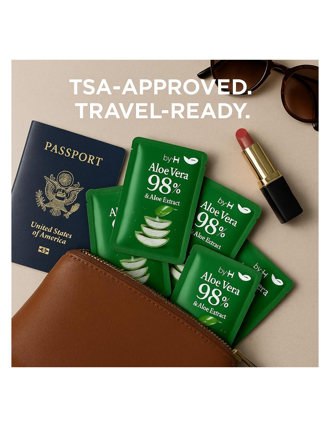 - Perfecto para Viajar y Alivio en Movimiento - Incluye 30 paquetes mini sellados individualmente de gel de aloe vera orgánico al 98% - ligero, conforme a la TSA, e ideal para vuelos, caminatas o uso diario.