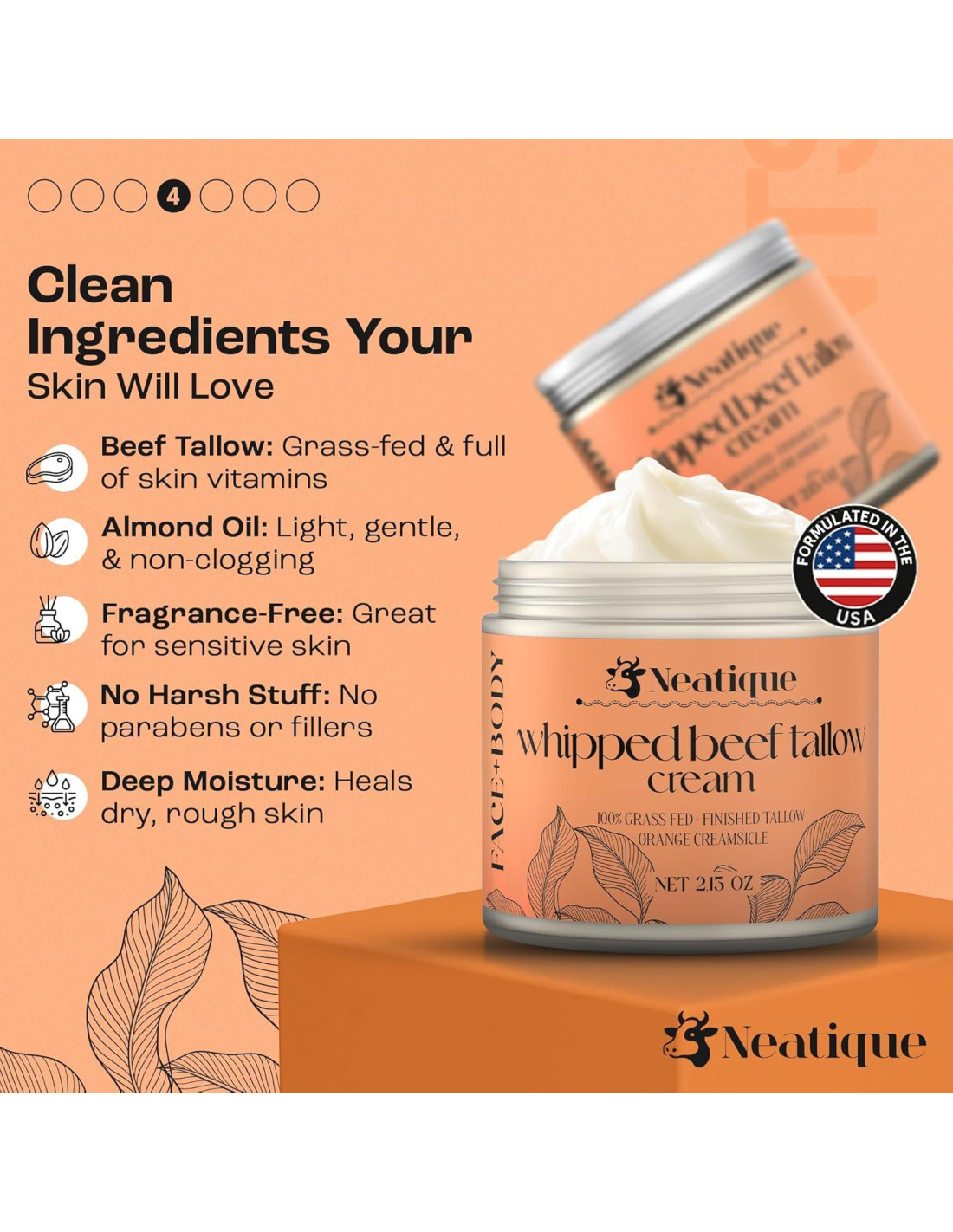 - Fórmula Pura y Amigable con la Piel: 100% grasa de res alimentada con pasto nutre profundamente la piel seca, sensible o propensa al eczema. Rica en vitaminas A, D, E y K, imita los lípidos naturales de la piel para reparar las barreras de humedad sin obstruir los poros.
