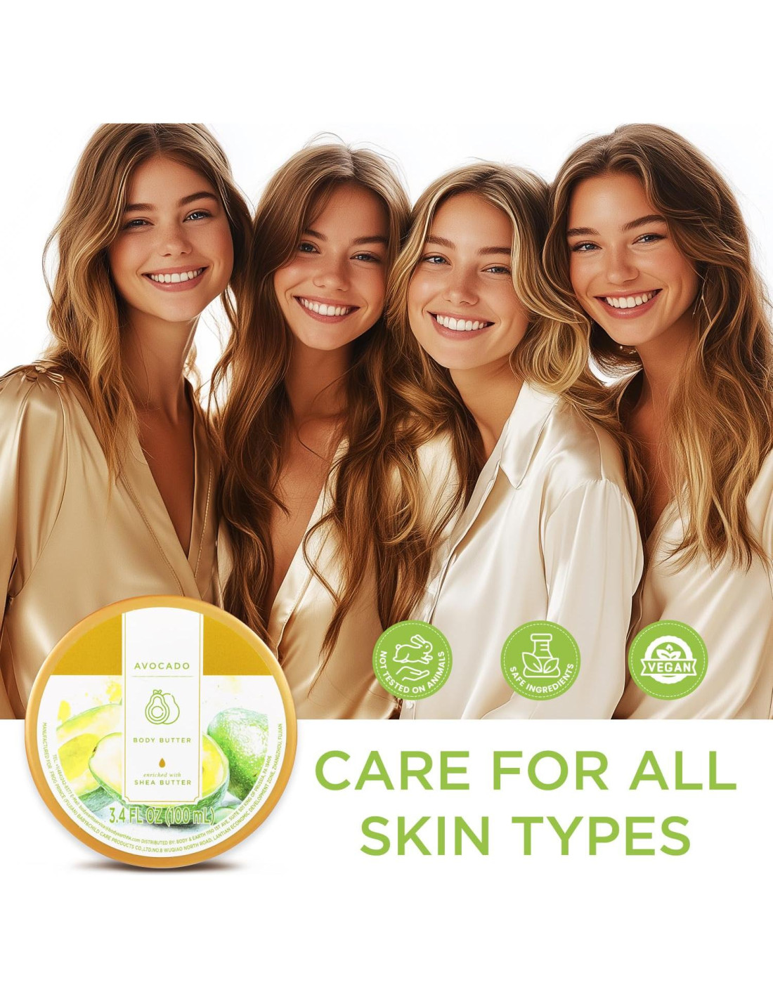 - CUIDADO PARA TODO TIPO DE PIEL: El diseño de nuestra Manteca Corporal de Aguacate es suave y puede proporcionar un buen efecto de cuidado sin importar tu tipo de piel. Puede hidratar y nutrir todo tipo de piel, incluyendo piel seca, deshidratada, grasa y cuidar la piel sensible.