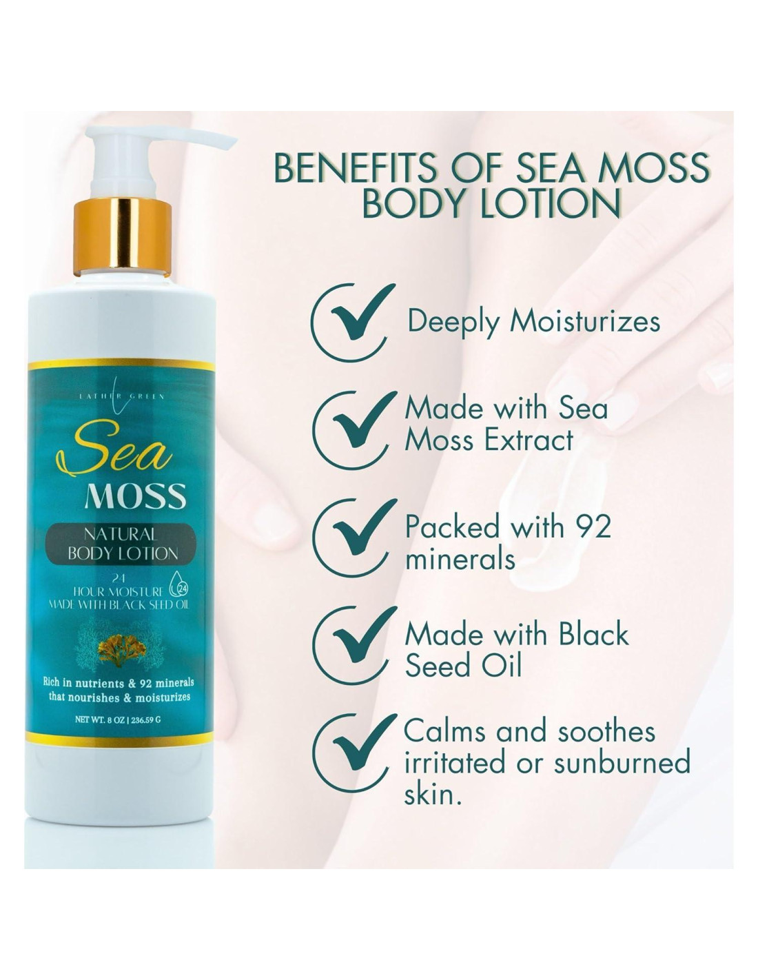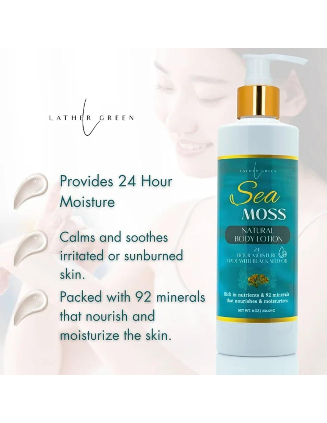 Mima tu piel con la Loción Corporal Natural de Musgo Marino de Lather Green, una fórmula hidratante diseñada para proporcionar 24 horas de humedad y nutrición. Infundida con musgo marino rico en nutrientes y aceite de semilla negra lleno de antioxidantes, esta loción repone la piel seca y sensible mientras la protege de los estresores diarios. Enriquecida con 92 minerales y vitamina E, deja tu piel sintiéndose suave, lisa y radiante. Perfecta para todo tipo de piel, esta loción no tóxica está libre de parabenos, sulfatos y fragancias sintéticas, ofreciendo una solución segura y suave para el cuidado diario de la piel.