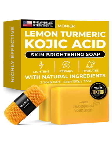 - AROMA REVITALIZANTE: El Jabón Kójico de Limón y Cúrcuma MONIER ofrece una experiencia de aroma refrescante, combinando la fragancia estimulante del limón con las notas cálidas y terrosas de la cúrcuma para un acabado limpio y revitalizante que permanece contigo.