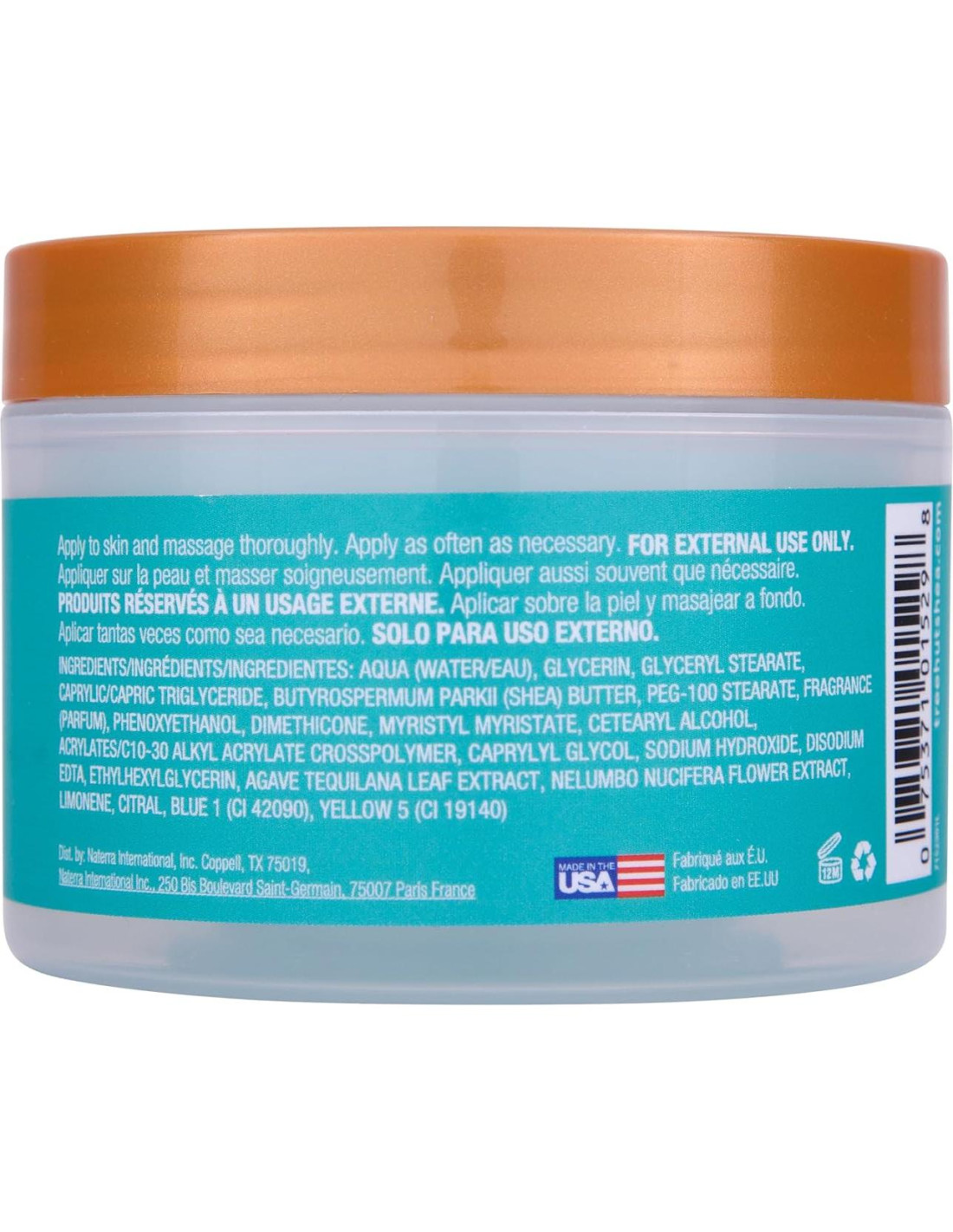 - Esta Manteca Corporal Batida de Tree Hut está hecha con Manteca de Karité, que es conocida por hidratar profundamente, nutrir y suavizar la piel seca mientras ayuda a promover la elasticidad. También contiene Agua de Loto y Agave Azul, para ayudar a nutrir y tonificar. La mezcla propietaria nutre e hidrata con una fórmula batida ligera y aireada que se absorbe rápidamente en la piel con una sensación no grasosa.