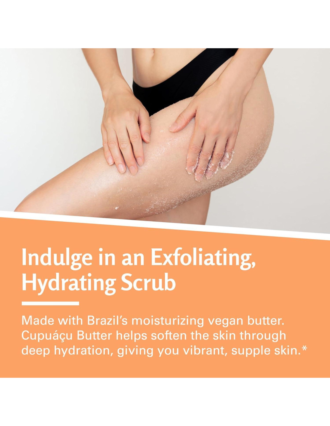 - Manteca Vegana Hidratante: Nuestro nuevo Exfoliante Corporal Brasileño está hecho para ayudar a hidratar profundamente tu piel. Hemos utilizado Manteca de Cupuacu como su ingrediente principal, que ayuda a pulir y suavizar la piel con una cremosidad rejuvenecedora que la mayoría de los exfoliantes de baño carecen.