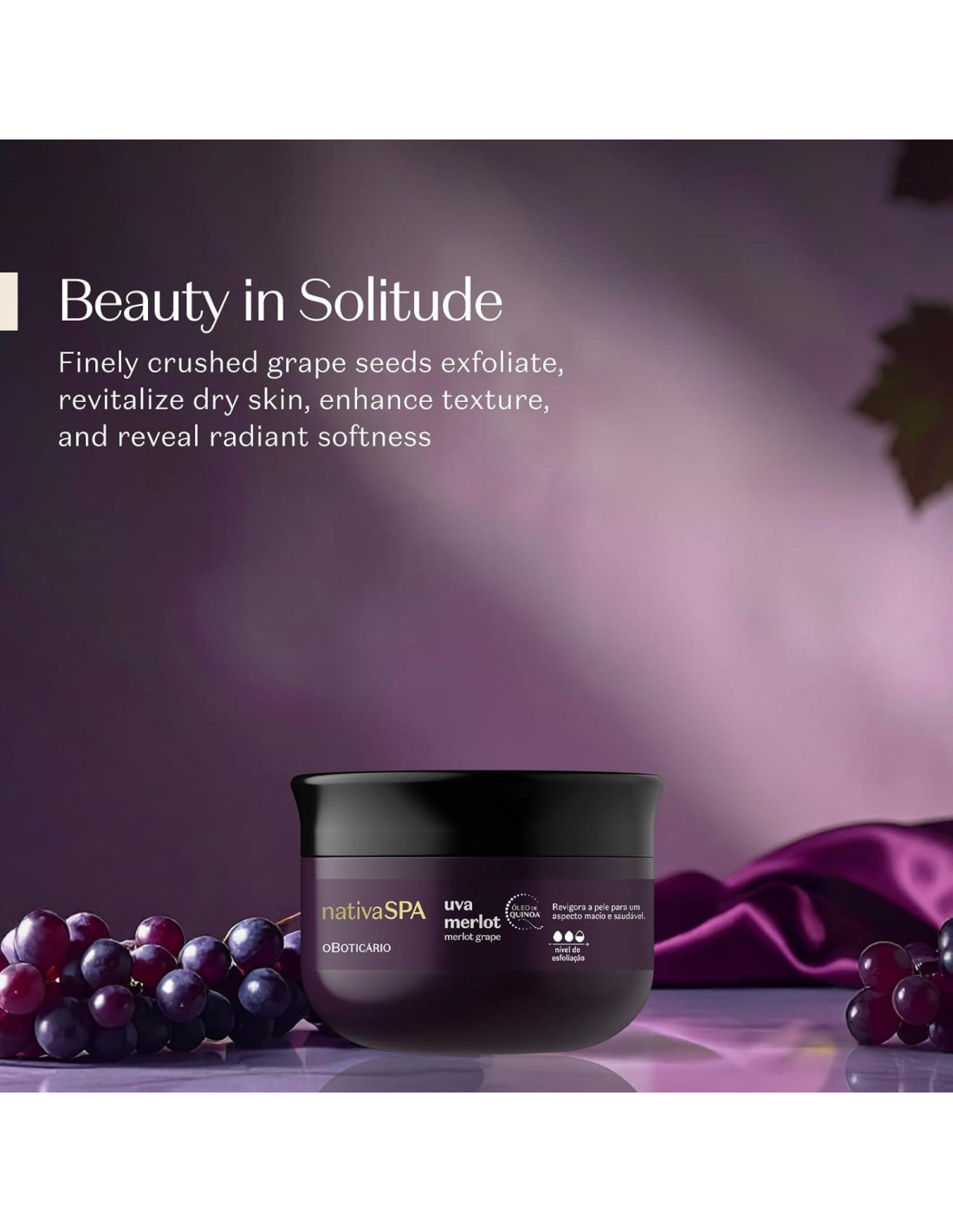 - Exfoliación Poderosa: Semillas de uva finamente trituradas eliminan suavemente las células muertas de la piel, revelando una piel radiante, más suave y más lisa. Mejora la textura de tu piel para un acabado radiante