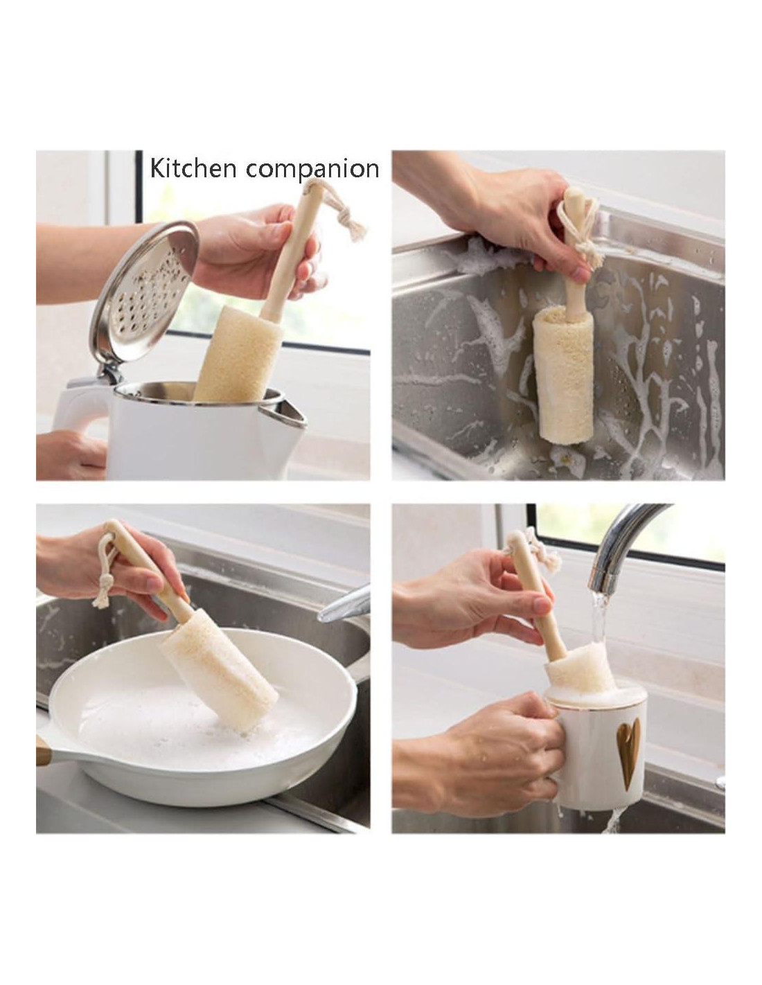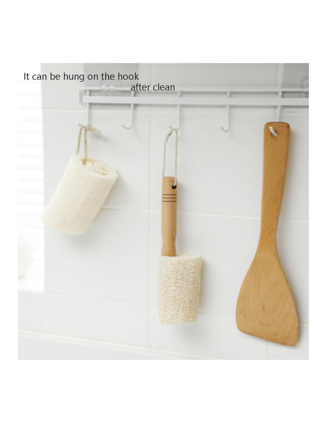 - El cepillo de taza de lufa con mango de madera lufa natural Sin pérdida de pelo, sin daño a la mano, desinfección suave. Mango de haya, color exquisito, textura natural, líneas claras, sin sensación áspera. Es muy duradero. La esponja de baño lufa se puede usar para limpiar tazas de agua, tazas, tazas de té, hervidores y otros recipientes.