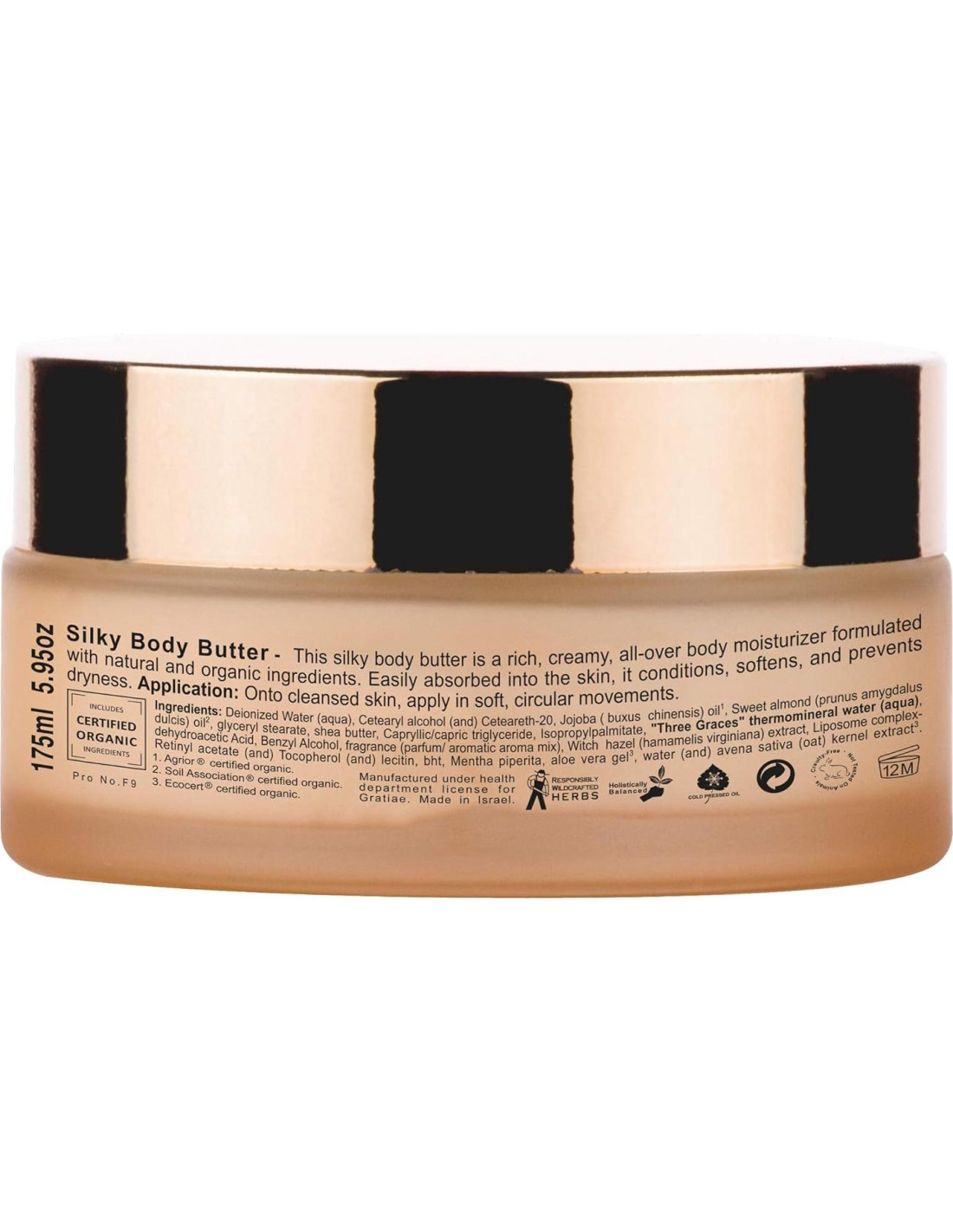 Manteca corporal sedosa Gratiae belleza orgánica por naturaleza, cuidado de la piel anti envejecimiento manteca de karité, humectante, crema hidratante para estrías, reafirmante, cuello y escote, manzana, té verde y jengibre 5.95Fl.oz...