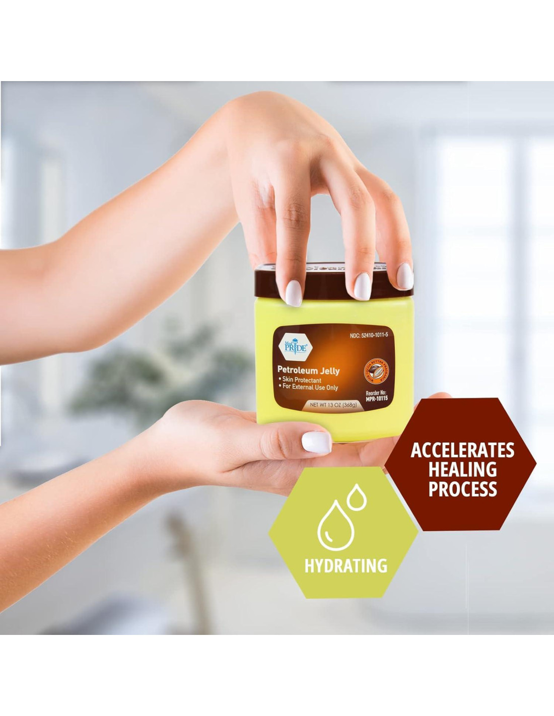 - SELLO HIDRATANTE: Di adiós a la piel seca y sensible con nuestra vaselina, cargada de emolientes hidratantes efectivos. Sella la humedad de tu piel, previene la picazón y la descamación, y actúa como tu escudo contra quemaduras por viento, clima frío y otras molestias en la piel.
