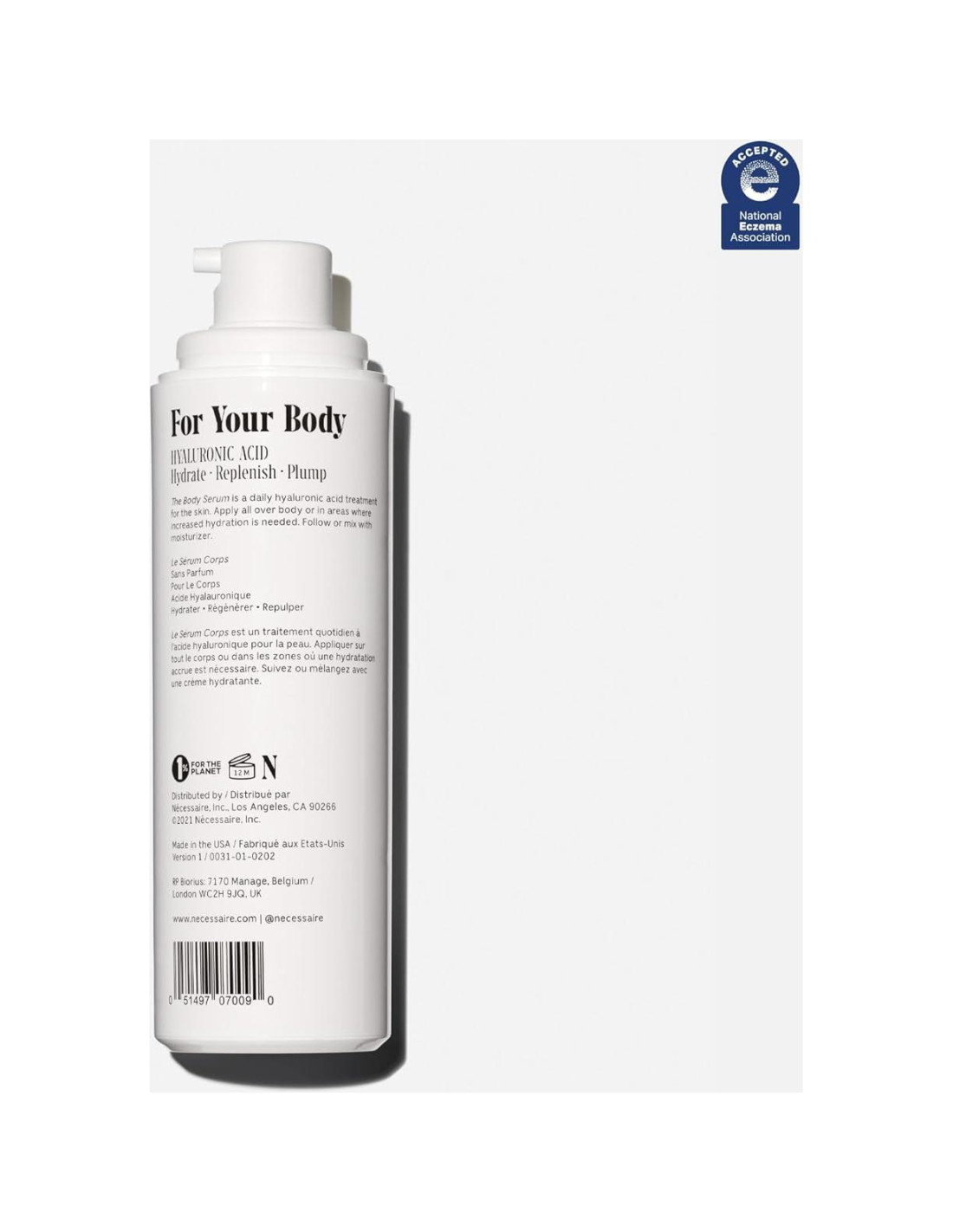 DESCRIPCIÓN DEL PRODUCTO: El Suero Corporal es un tratamiento diario de Ácido Hialurónico para la piel. Este suero hidratante de rápida absorción está formulado con cinco (5) pesos moleculares de Ácido Hialurónico para una hidratación a múltiples niveles. La Ceramida NP repone la piel y la Niacinamida ayuda a fortalecer la barrera protectora de la piel. Sin Silicona. Sin Ftalatos. Sin Parabenos. Sin PEGs.