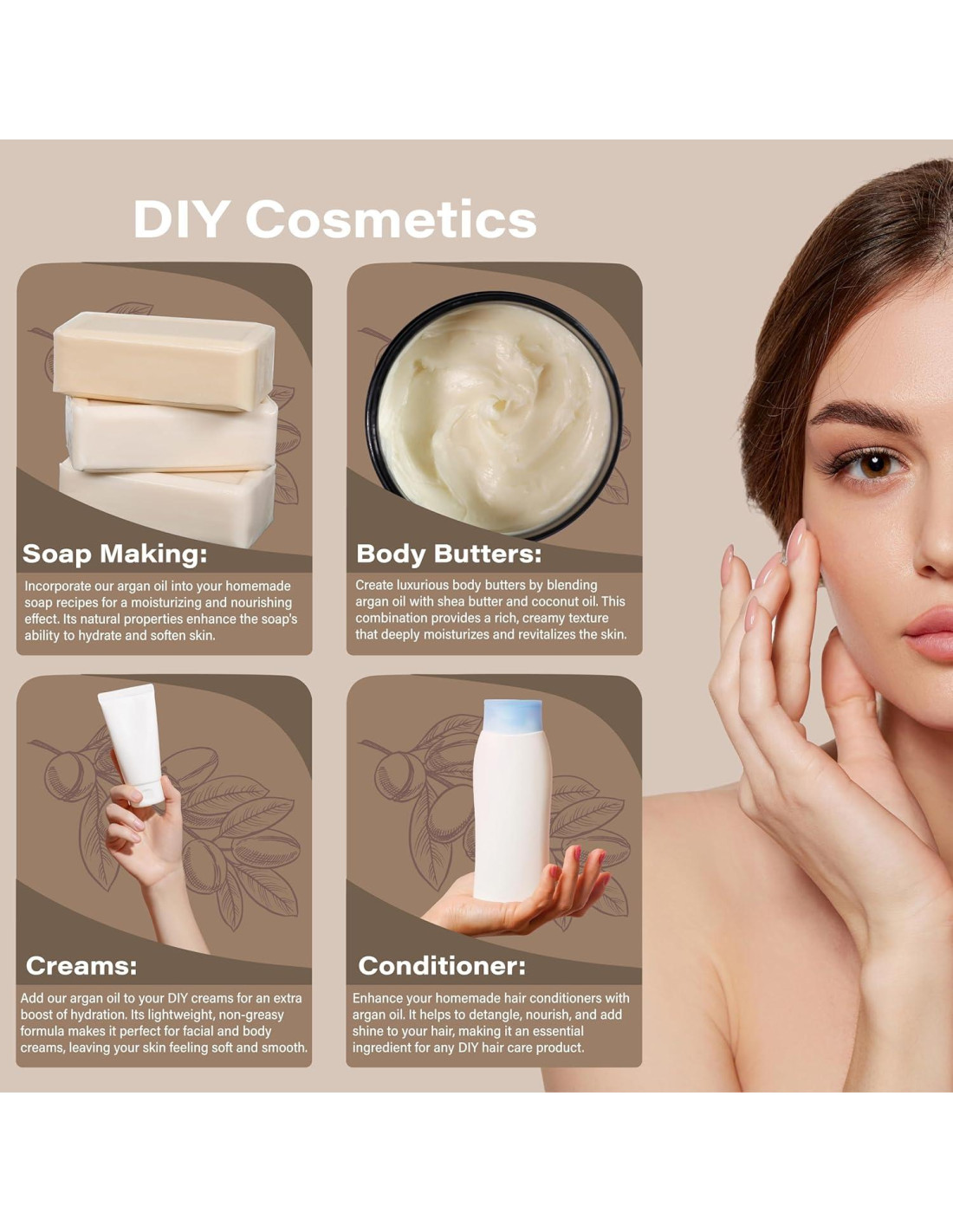 - ELIXIR PARA EL CUIDADO DE LA PIEL - Sumérgete en la terapia de hidratación definitiva. Nuestro Aceite de Argán es rico en ácidos grasos esenciales y vitamina E, proporcionando una hidratación profunda que deja tu piel suave, flexible y completamente rejuvenecida. Los antioxidantes en el Aceite de Argán ayudan a neutralizar los radicales libres, reduciendo la apariencia de líneas finas y arrugas. Restaura el brillo juvenil de tu piel y abraza un cutis más vibrante.