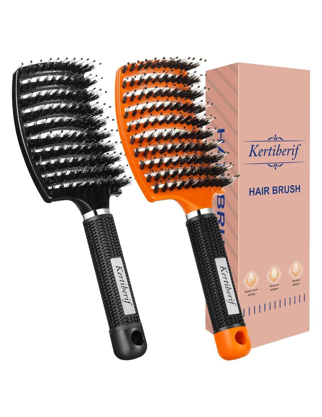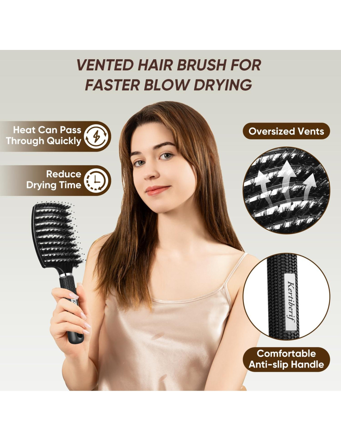 - Juego de Cepillos para el Cabello - Este cepillo desenredante de paleta está hecho de material de resina ABS y cerdas de jabalí, lo que hace que el cepillo para el cabello sea ligero, confiable y fácil de limpiar. Puedes masajear tu cuero cabelludo a través de los pines de nylon con cabeza redonda sin rasguñar ni tirar, y esparcir los aceites naturales del sebo desde la raíz hasta la punta de tu cabello a través de las cerdas de jabalí, lo cual es bueno para mejorar la textura de tu cabello.