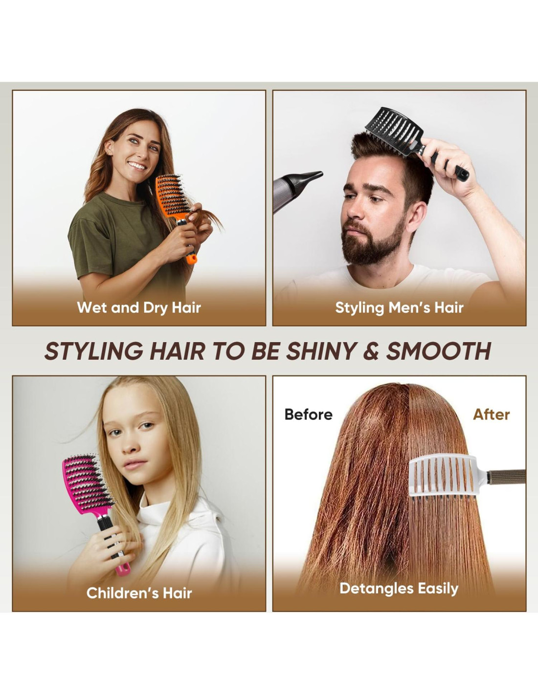 - Para Todos los Tipos de Cabello - Estos cepillos de cabello curvados son adecuados para mujeres, hombres y niños, y funcionan muy bien en cabello rizado, natural, grueso, largo, corto, húmedo y seco. Disfruta de un agradable masaje en el cuero cabelludo mientras cepillas tu hermoso cabello todos los días.