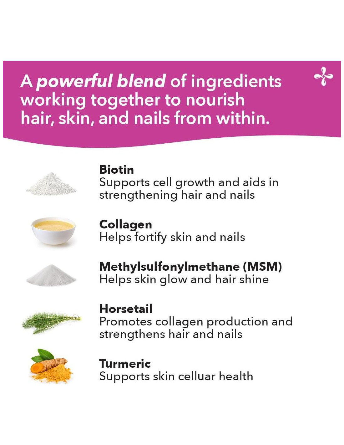 - Ingredientes Clínicamente Probados - Elaborado con ingredientes clínicamente probados, Beau-T contiene Biotina, Colágeno, MSM, Cola de Caballo y Cúrcuma. Nuestros ingredientes naturales y de alta calidad trabajan juntos para nutrir el cabello, la piel y las uñas y específicamente para ayudar con el crecimiento del cabello y las uñas.