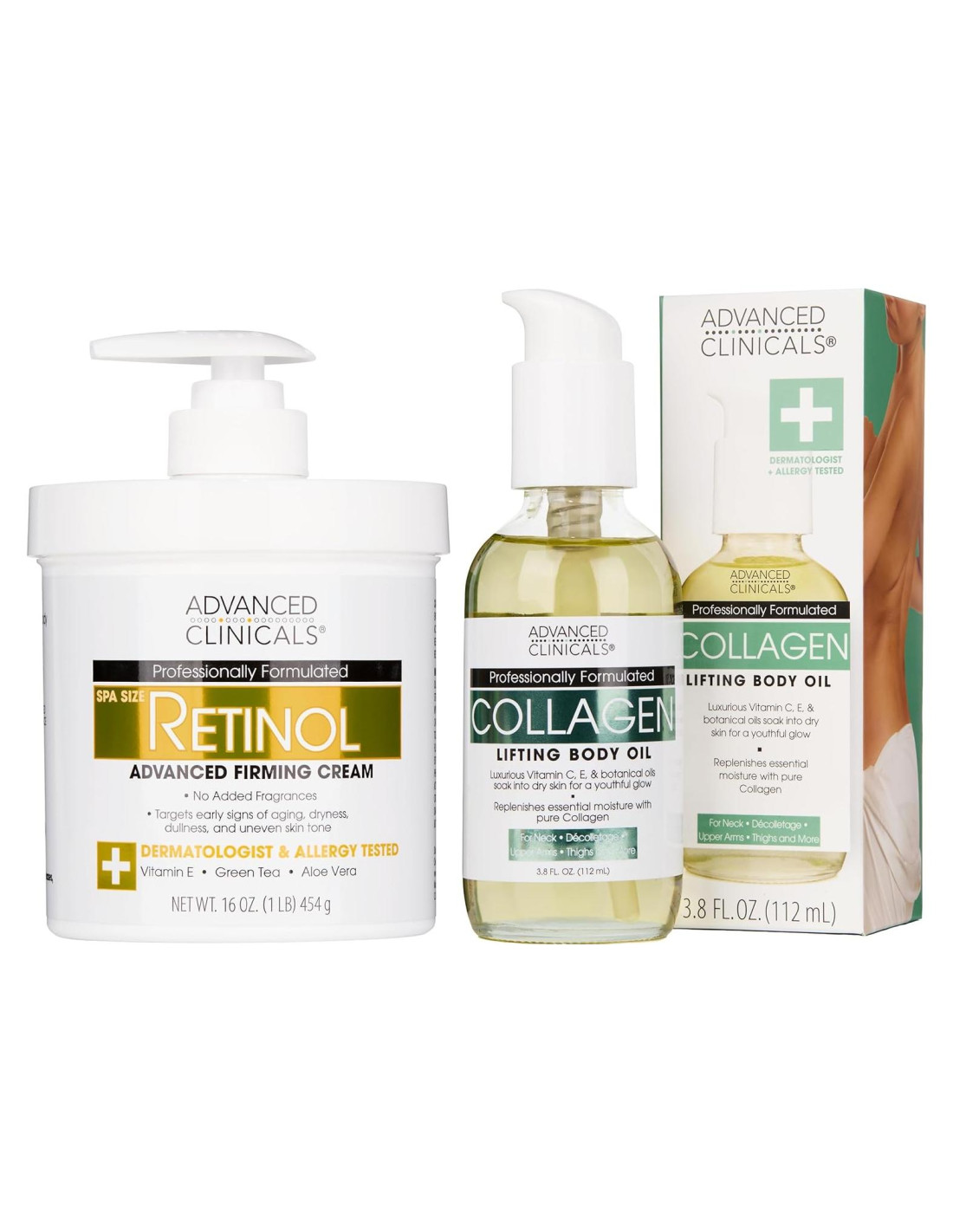 - Color: Paquete de Crema de Retinol + Aceite Corporal de Colágeno