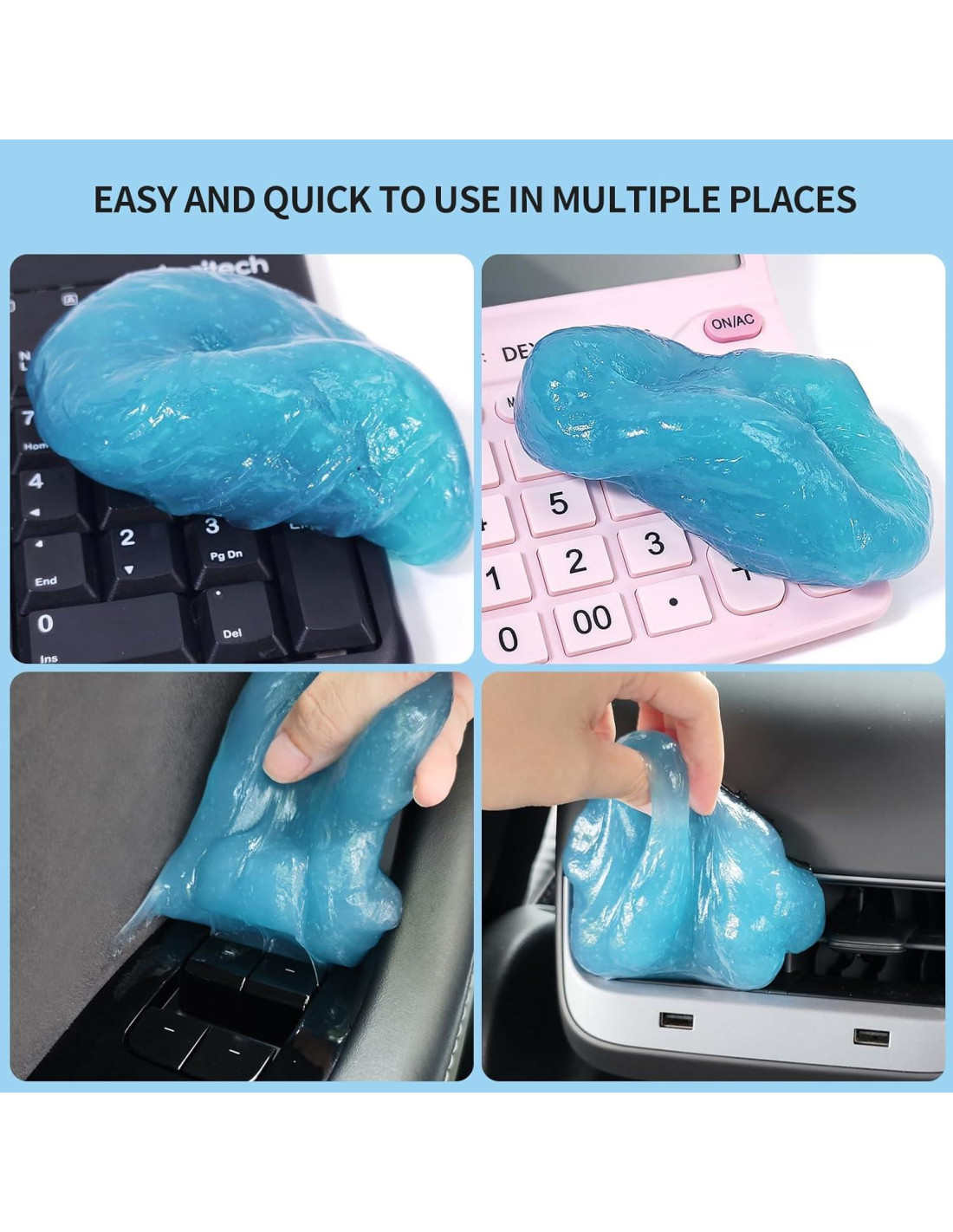 - Eliminación Eficiente de Polvo: Este gel de limpieza para autos está diseñado para recoger polvo, suciedad y desechos de espacios estrechos y rincones en el interior de tu vehículo. Ideal para rejillas de ventilación, portavasos y más. También es excelente para limpiar teclados de computadoras y dispositivos electrónicos.