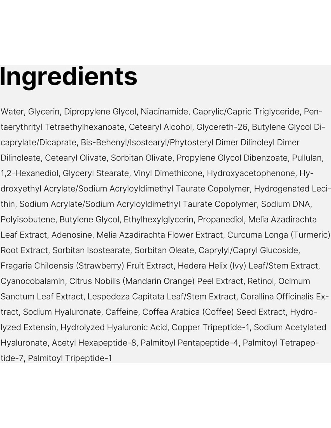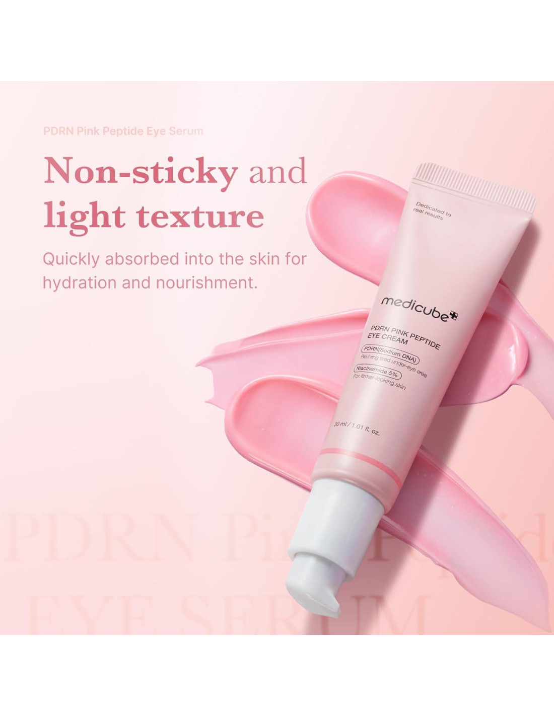 - Salmon DNA PDRN: Ingrediente innovador que ayuda a reducir la apariencia de áreas oscurecidas y mejora el área de los ojos opaca. El Salmon DNA PDRN altamente concentrado ayuda a mejorar el tono y la textura desigual de la piel del área de los ojos. *La información anterior se refiere solo a las características de las materias primas