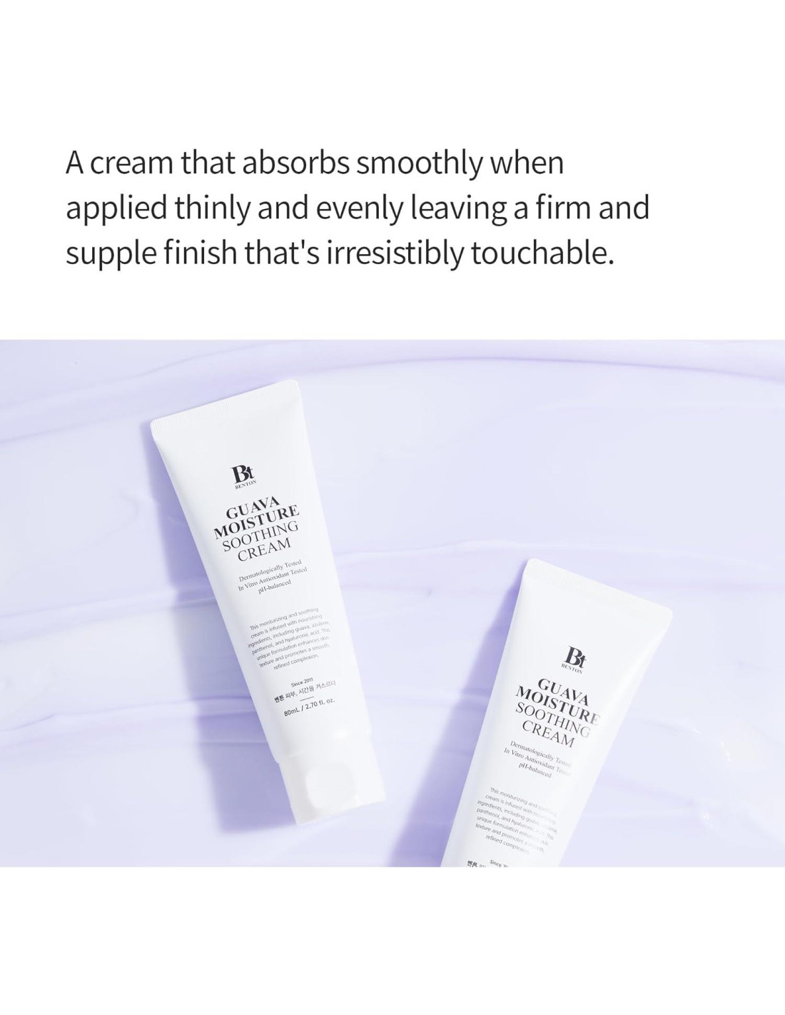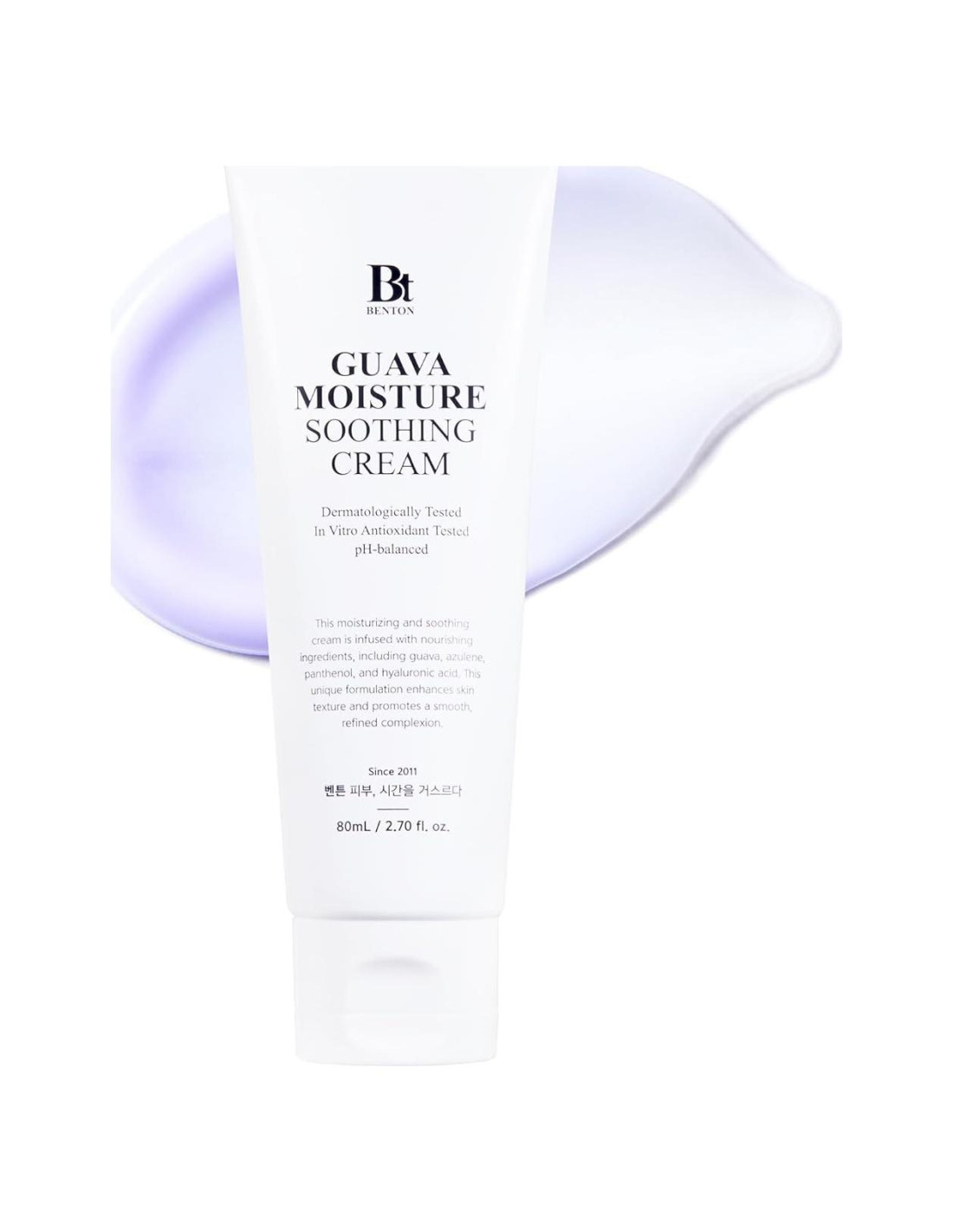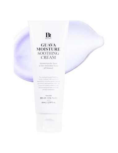 - La crema hidratante suavizante de guayaba de Benton contiene extractos de guayaba cultivados en la región prístina de la isla Jeju, Corea del Sur. Destaca en suavizar e hidratar la piel, ayudando a mantener el equilibrio de aceite y agua de la piel, gestionar las células muertas de piel escamosa y dejar la piel suave y tersa.