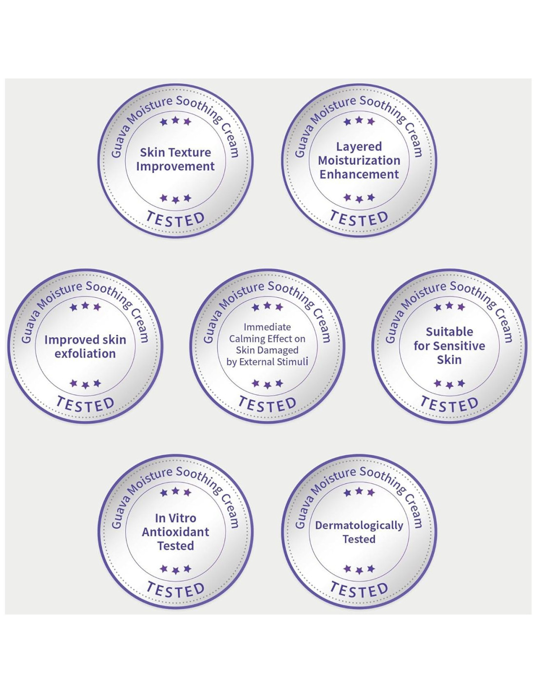 - El suave color lavanda de la crema de guayaba no proviene de colorantes artificiales, sino de azuleno, conocido por sus propiedades antioxidantes y suavizantes. Este color único mejora tu rutina de cuidado de la piel, proporcionando una experiencia calmante con cada uso.