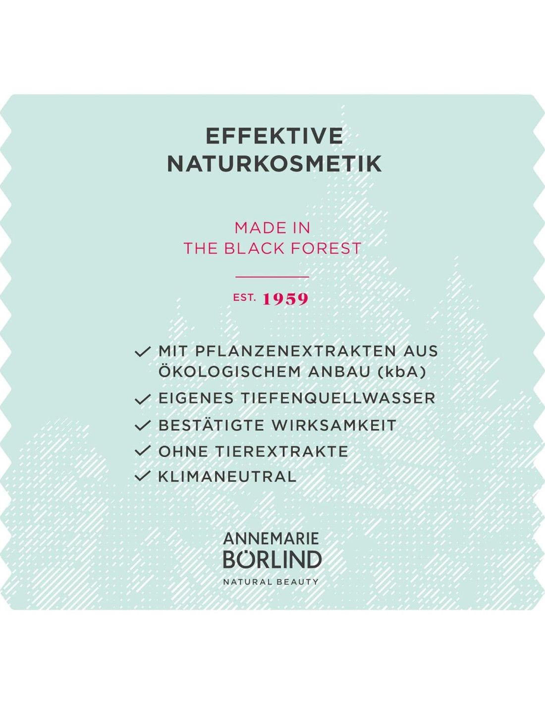- INGREDIENTES DE LA MÁS ALTA CALIDAD: Desarrollados y fabricados en la Selva Negra en Alemania con ingredientes vegetarianos y sostenibles para una piel naturalmente saludable. Todos los productos ANNEMARIE BRLIND son 100% libres de silicona, libres de parafina, libres de aceite mineral, libres de crueldad y libres de ingredientes genéticamente modificados. Eficacia y compatibilidad con la piel científicamente confirmadas.