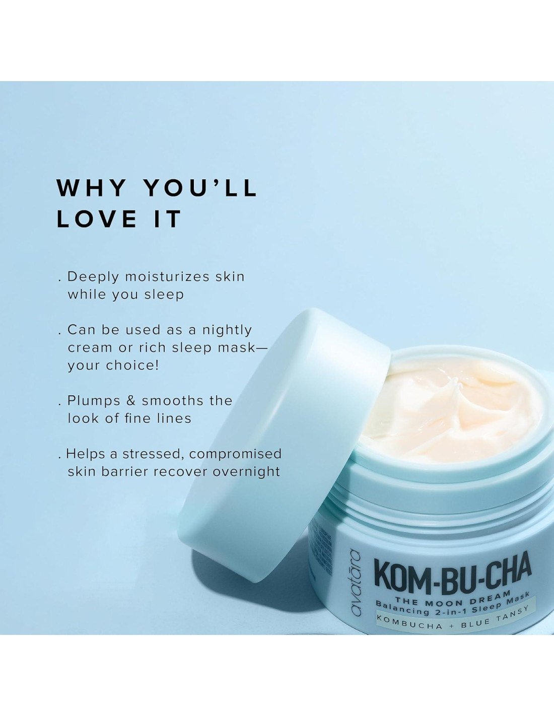 - Felicidad Potenciada por Kombucha - ¡Desata el poder del equilibrio de kombucha con la crema nocturna The Moon Dream! Este hidratante facial para mujeres y hombres mantiene tu piel en su lugar feliz, manteniendo el equilibrio de humedad y promoviendo una complexión firme y juvenil.