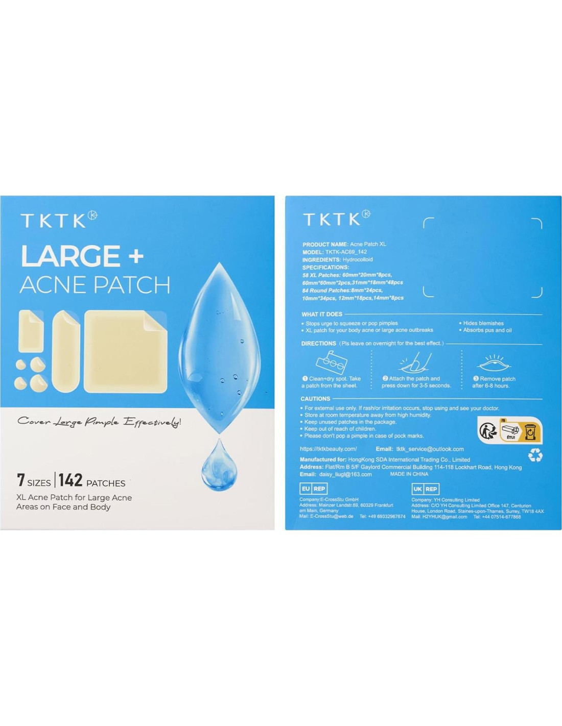 - 7 Tamaños, 142 Parches para Cada Necesidad: Los grandes parches para granos de TKTK vienen en 7 tamaños (31x18mm, 60x20mm, 60x60mm, 8mm, 10mm, 12mm, 14mm), diseñados para atacar el acné en varias áreas como tu cara, espalda, pecho, barbilla o frente. No importa el tamaño o la ubicación, nuestros parches de hidrocoloide se ajustan eficazmente y proporcionan la cobertura que necesitas