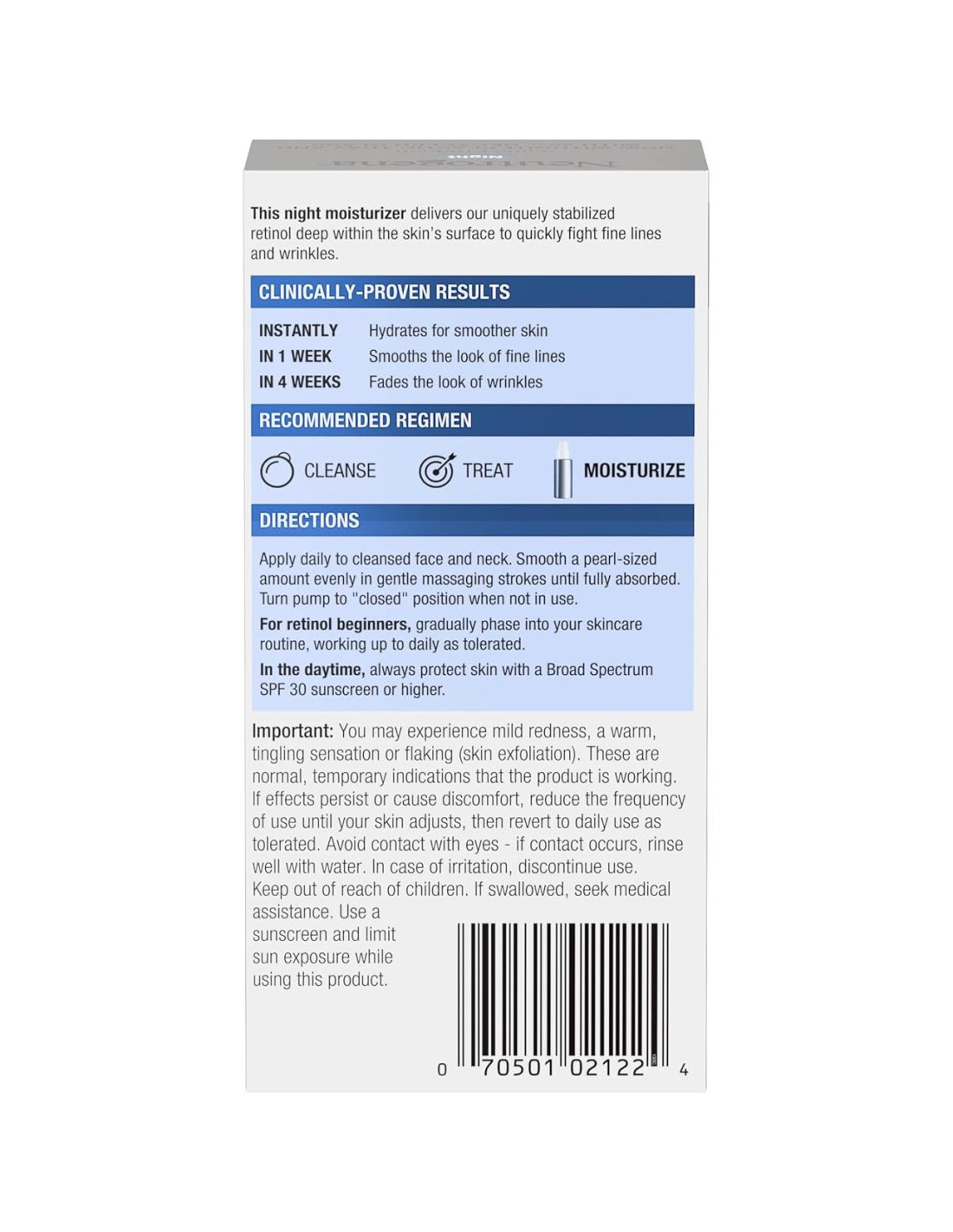 - Botella de bomba de 29.57 ml de Neutrogena Reparación Rápida de Arrugas Crema Hidratante Nocturna con retinol y ácido hialurónico para mejorar la apariencia de líneas finas y arrugas