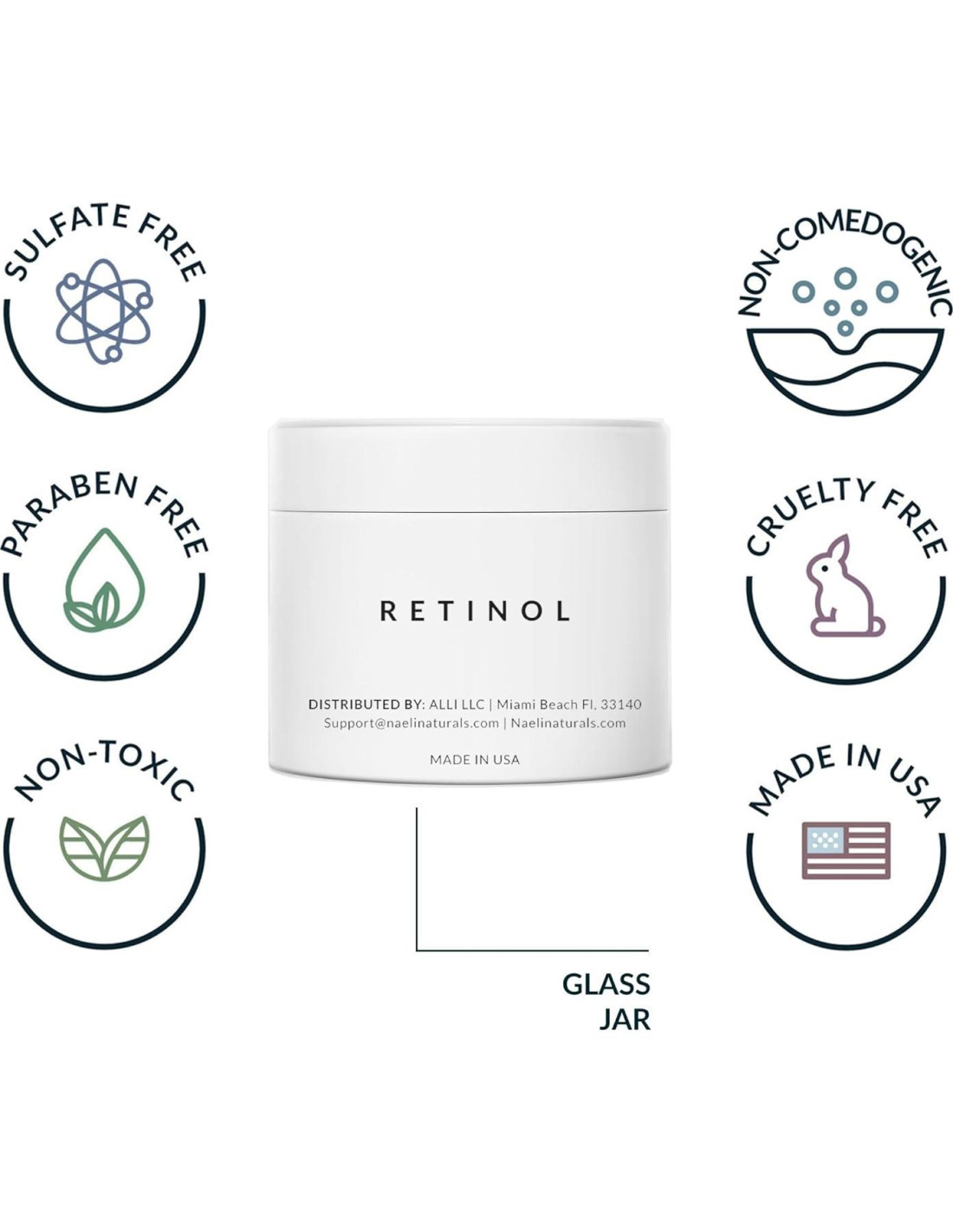 - CREMA NOCTURNA DE RETINOL NAELI - una potente crema de retinol para cara y cuello, anti envejecimiento 4.25% retinoide, crema hidratante de colágeno y péptidos que estimula el colágeno, aumenta la firmeza y elasticidad de la piel. Suaviza visiblemente las líneas finas y arrugas.