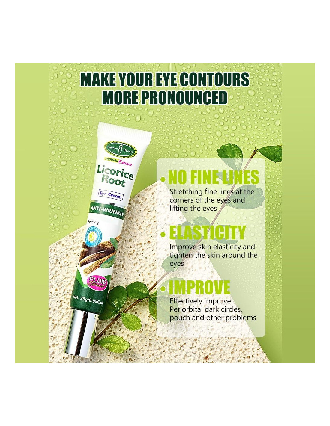- Fórmula Potente Anti-Envejecimiento: La Crema para Ojos de Raíz de Regaliz aprovecha el poder nutritivo del extracto de raíz de regaliz para combatir arrugas, líneas finas y signos de envejecimiento alrededor del delicado área de los ojos.