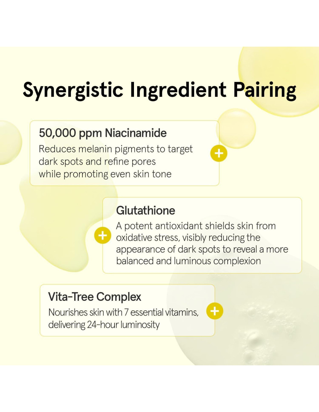 - LUMINOSIDAD TODO EL DÍA: Eleva tu rutina de cuidado de la piel con nuestro poderoso suero de Niacinamida y Glutatión, enriquecido con 7 vitaminas esenciales que sinergizan con Niacinamida y Glutatión para ofrecer luminosidad durante 24 horas y un cutis saludable.