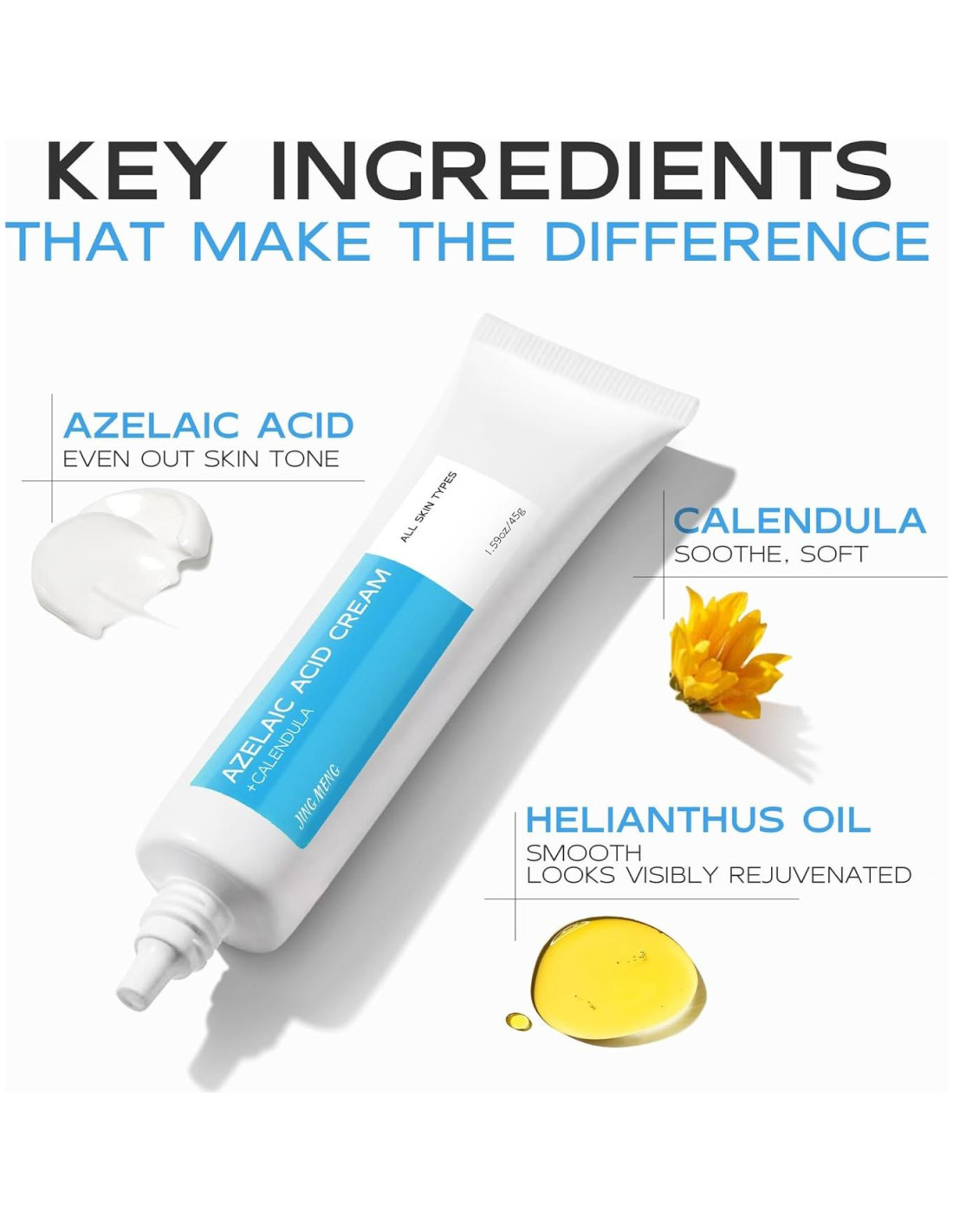 - Reduce el enrojecimiento: Nuestro suero de ácido azelaico al 10% es suave para pieles sensibles y puede reducir el enrojecimiento del rostro y es muy útil para el tratamiento de la rosácea. Contiene ingredientes naturales como extracto de caléndula y extracto de Gastrodia elata que pueden calmar la piel.