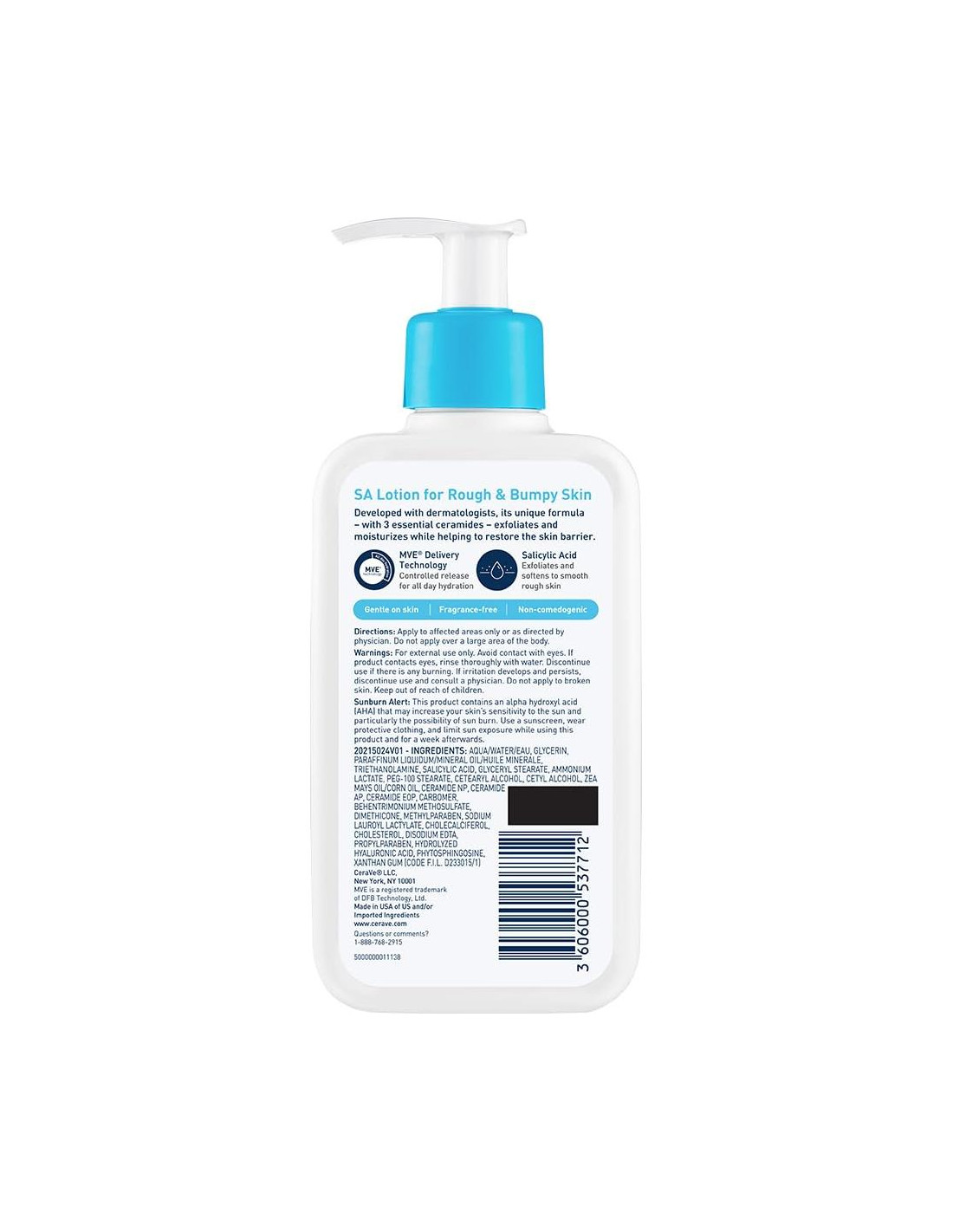 - [ LOCIÓN HIDRATANTE CERA VE CON ÁCIDO SALICÍLICO ] Hidratante corporal que exfolia suavemente la piel seca, escamosa o áspera y con bultos en las piernas y brazos superiores. Sensación ligera y no grasa que deja la piel suave y lisa.