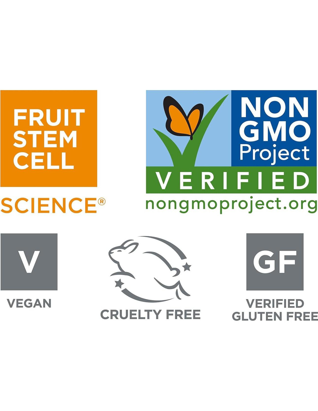 - Ciencia de Células Madre de Fruta: Una mezcla de los bioactivos más potentes de la naturaleza de la Manzana Herencia, Uva, Rosa Alpina Suiza, Árbol de Argán y Planta de Cáñamo apoyan la protección, restauración y radiancia de la piel