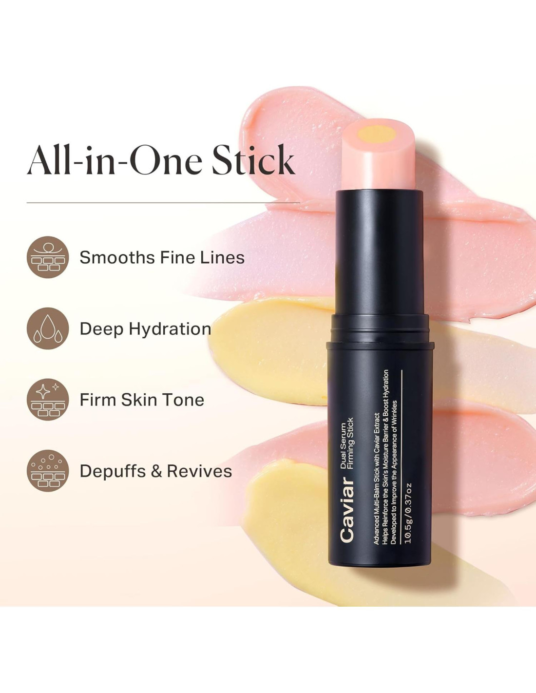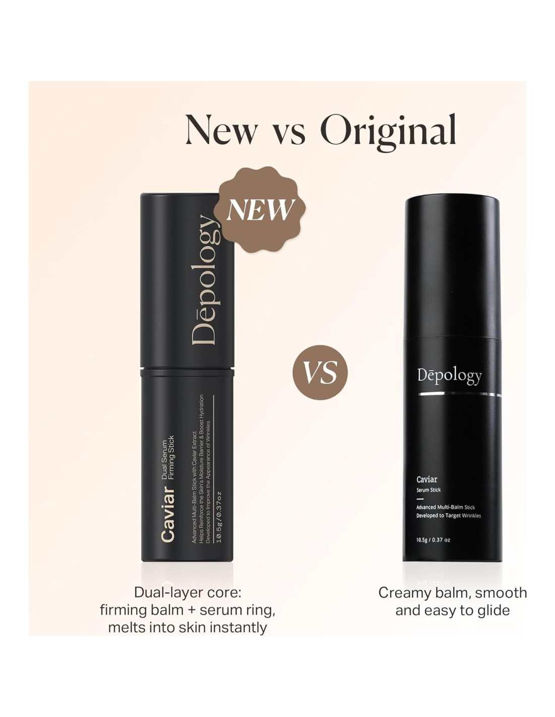 - Poder Doble para Reafirmar Visiblemente - Nuestra barra de suero de nueva generación cuenta con una fórmula de doble capa: un núcleo interno potente con Palmitato de Retinilo y Cúrcuma, y una capa exterior infusionada con Extracto de Caviar, Cafeína y aceites nutritivos. Juntos, suavizan e hidratan visiblemente la piel en un solo paso.