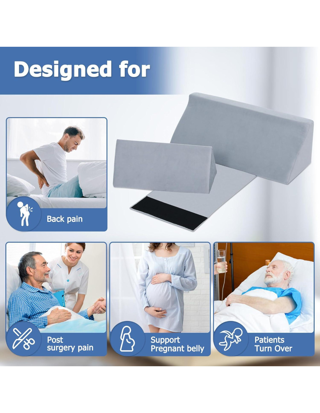 - Diseño multiuso: El cojín en cuña para la cama presenta un diseño único en forma de R con una pendiente de gradiente cómoda, proporcionando un soporte excepcional para los durmientes de lado en un ángulo de inclinación de 30 grados. Más allá del soporte para dormir de lado, el gran cojín en cuña se puede usar para soporte de mantas, elevación de piernas y soporte de tobillos; el pequeño cojín en cuña se puede usar para soporte de muñeca, soporte de cuello y relajación de piernas.